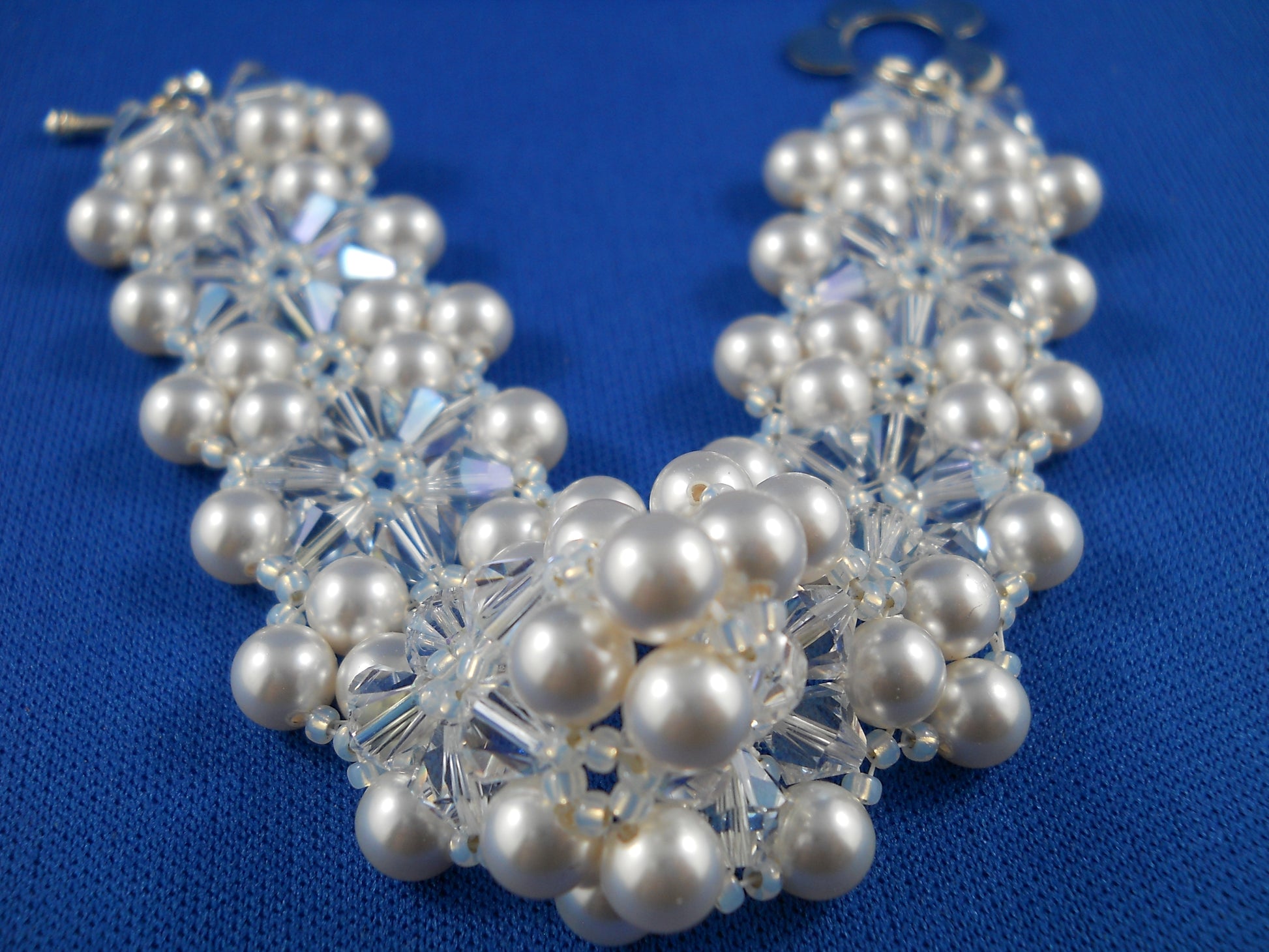 Swarovski pearls and crystals with Sterling Silver flower toggle (7 3/4")