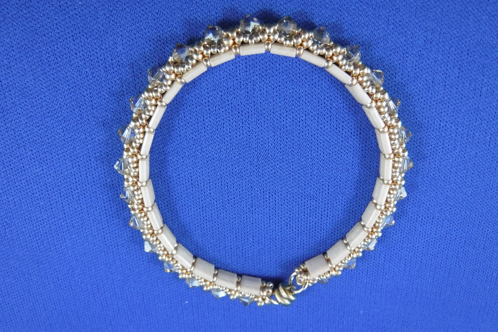 Beaded bangle bracelet with Swarovski crystals and magnet closure (6 3/4")-"golden shadow" colour