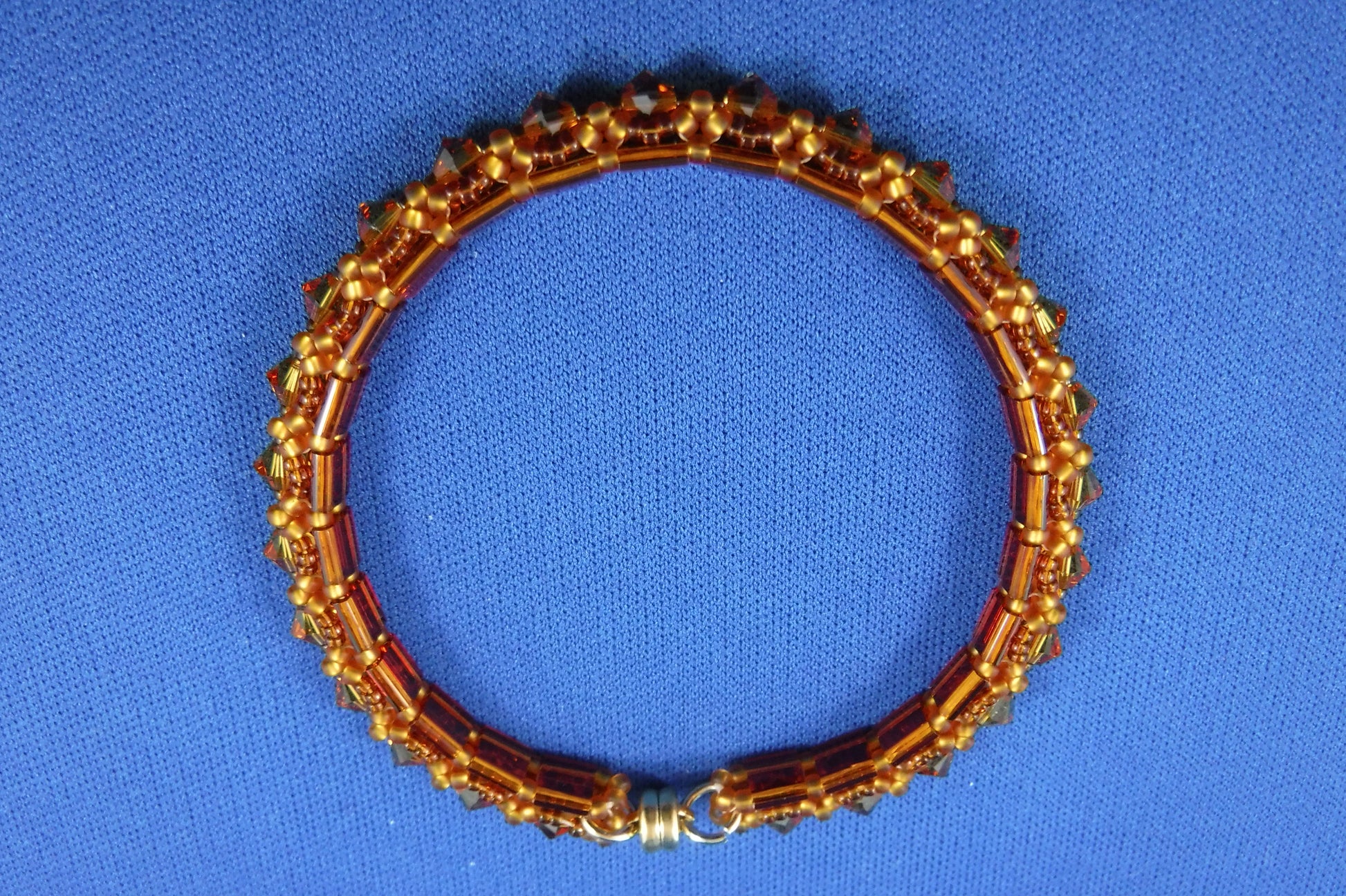 Beaded bangle bracelet with Swarovski crystals and magnet closure (6 3/4")-"topaz" colour