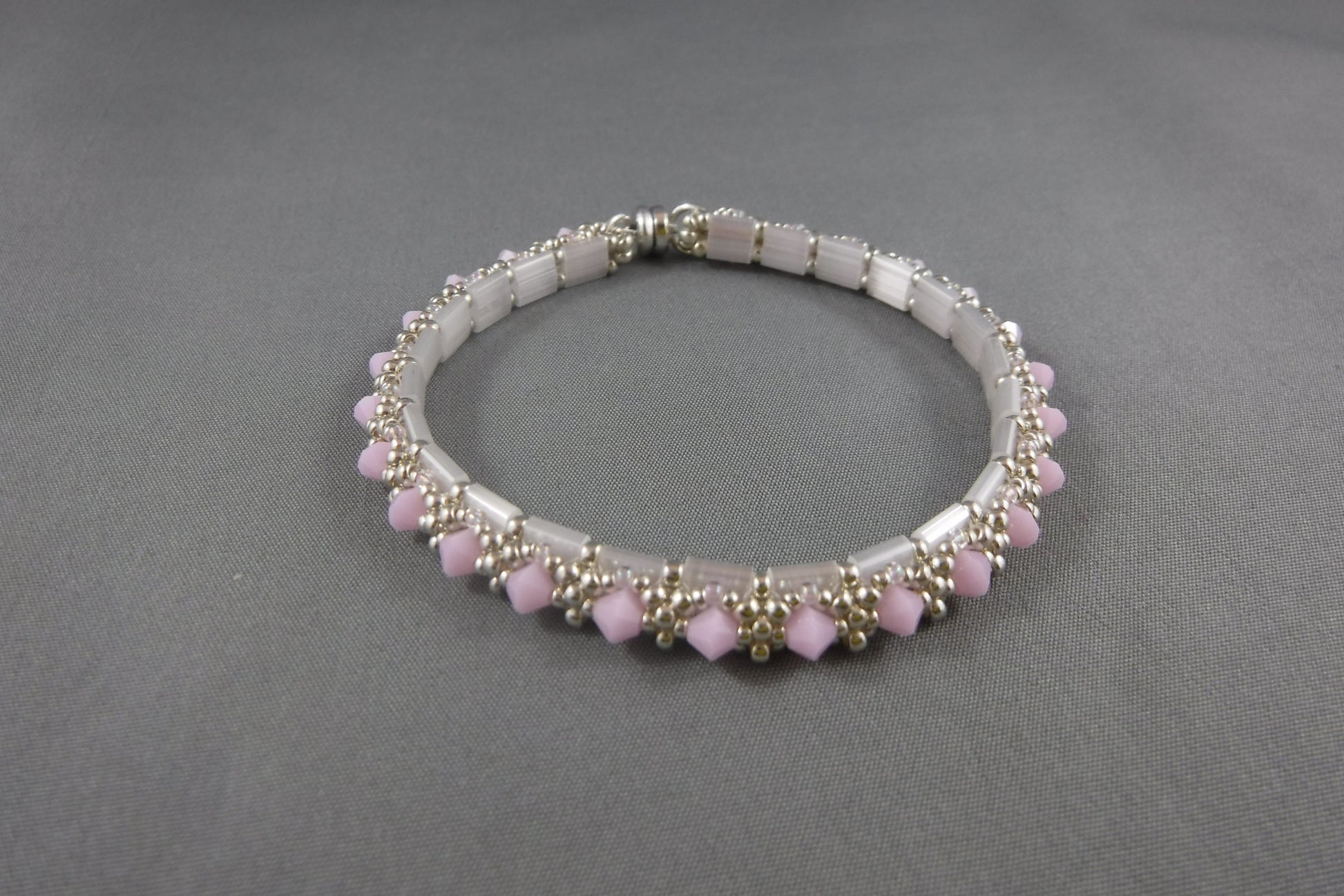 Beaded bangle with Swarovski crystals, Japanese seedbeads and magnet closure (6 1/2")-pastel pink and silver
