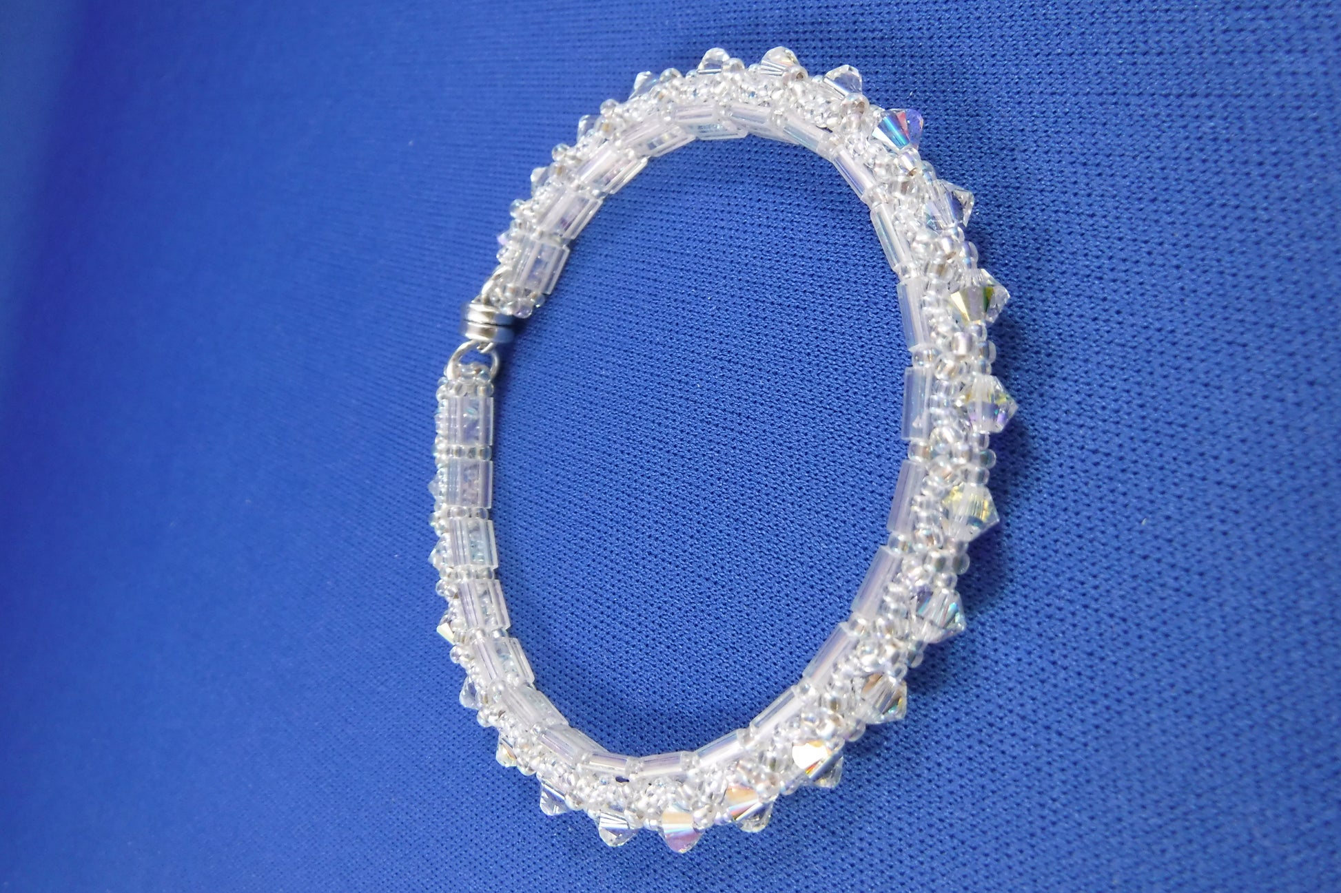 Beaded bangle bracelet with Swarovski crystals and magnet closure (6 3/4")-clear reflective colour