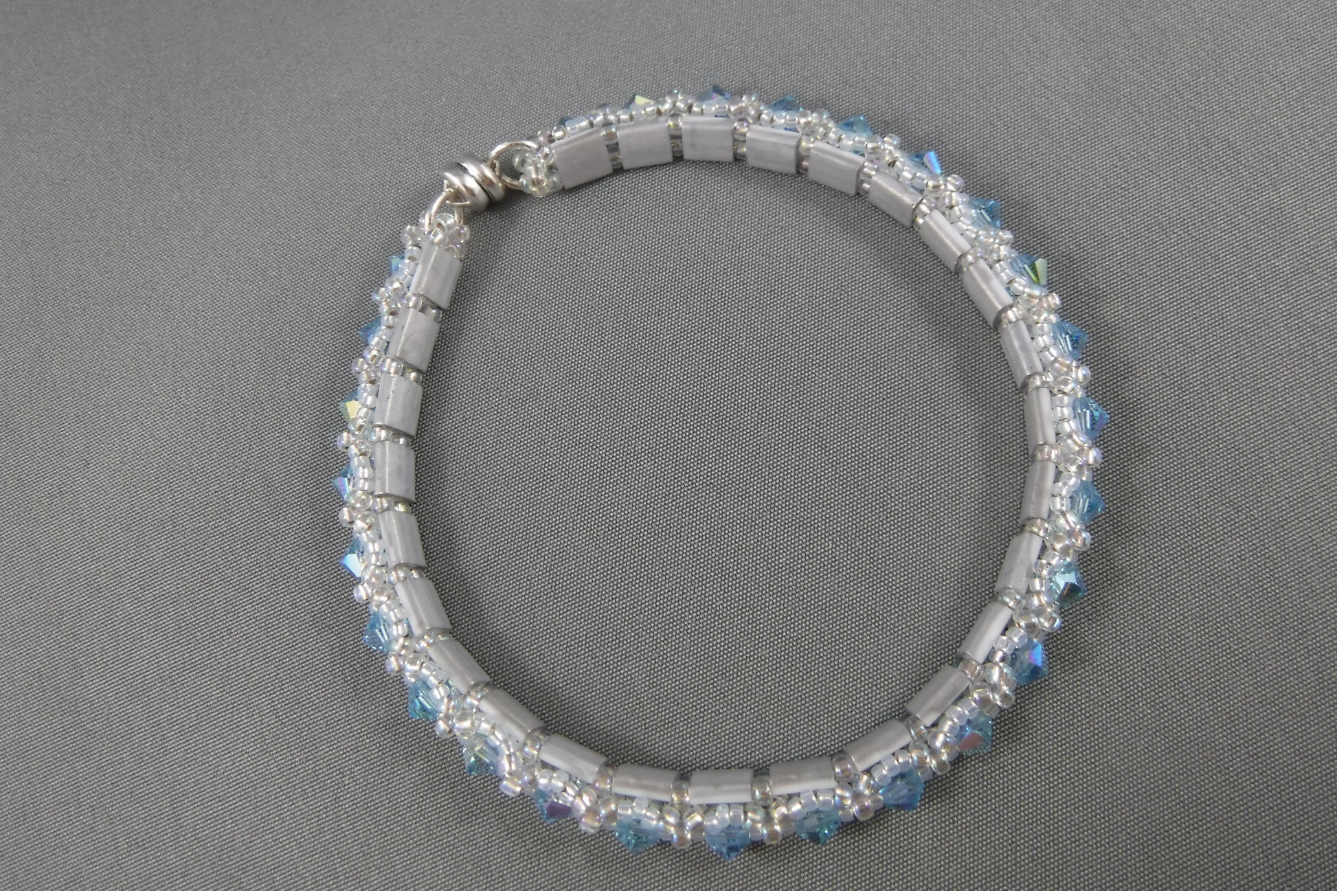 Beaded bangle bracelet with Swarovski crystals and magnet closure (7 1/4")-aqua blue & silver