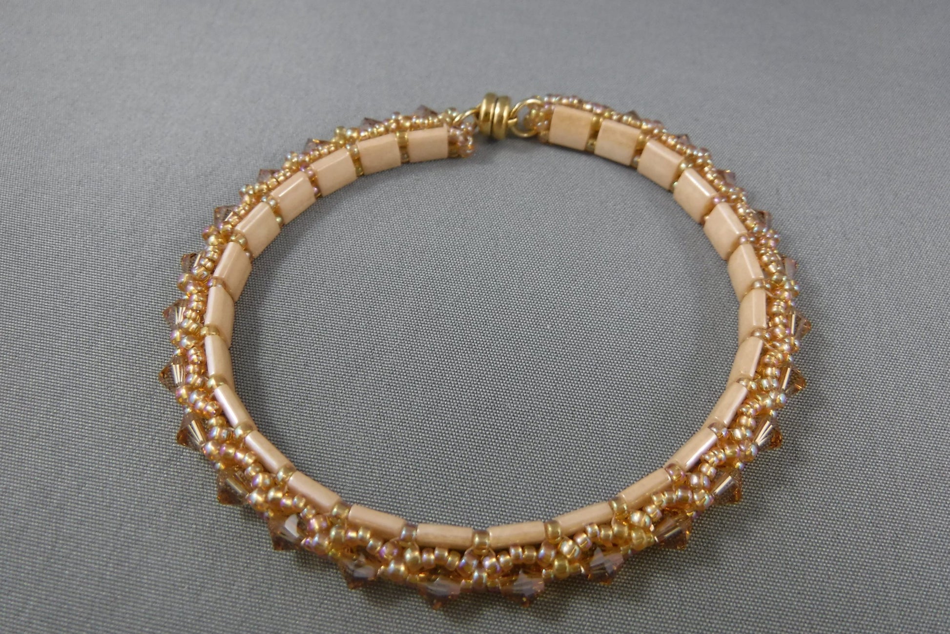 Beaded bangle with Swarovski crystals and magnet closure (6 3/4")- light topaz colour