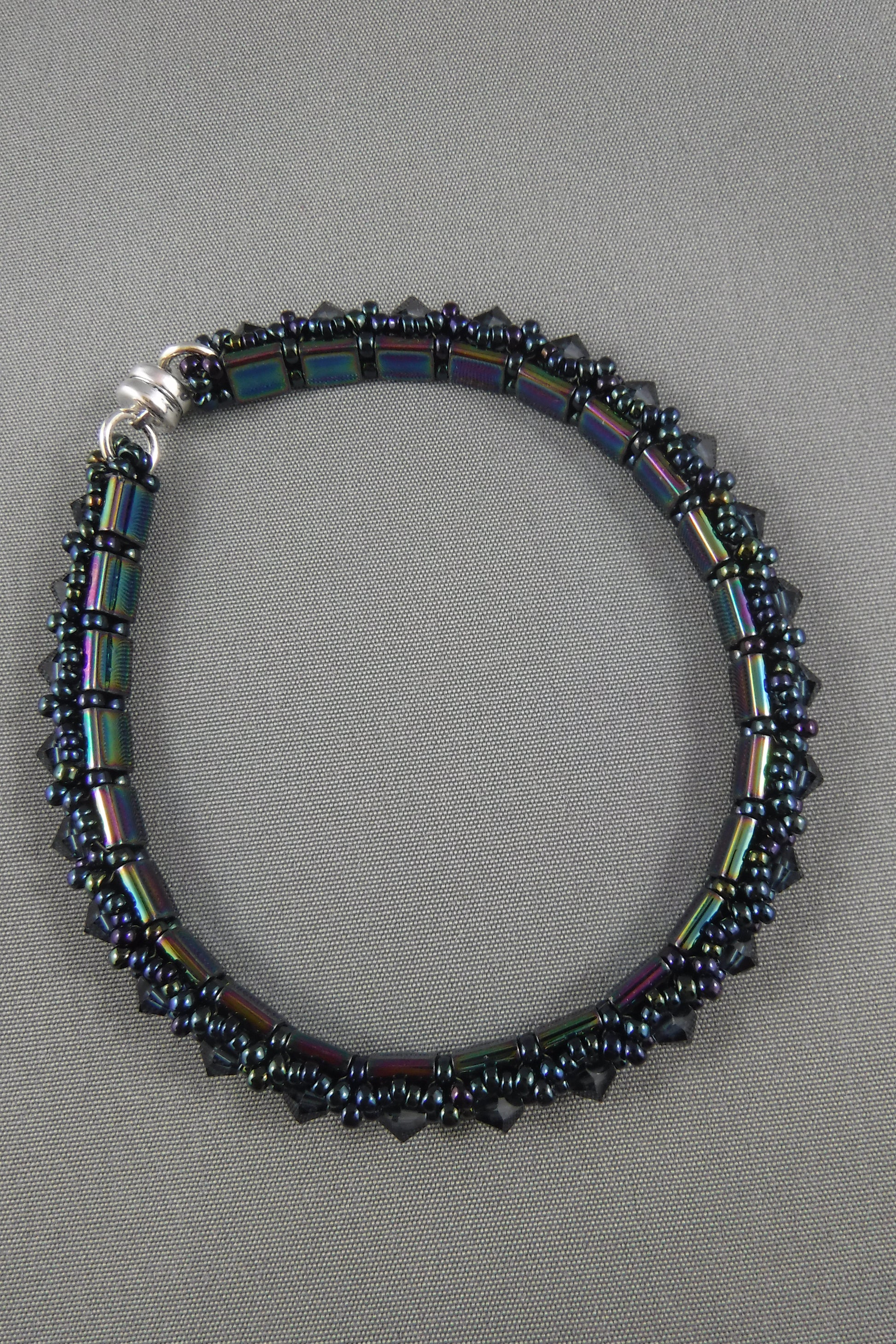 Swarovski crystal bangle bracelet with Tila bead base and magnetic closure-blue (6 1/2")