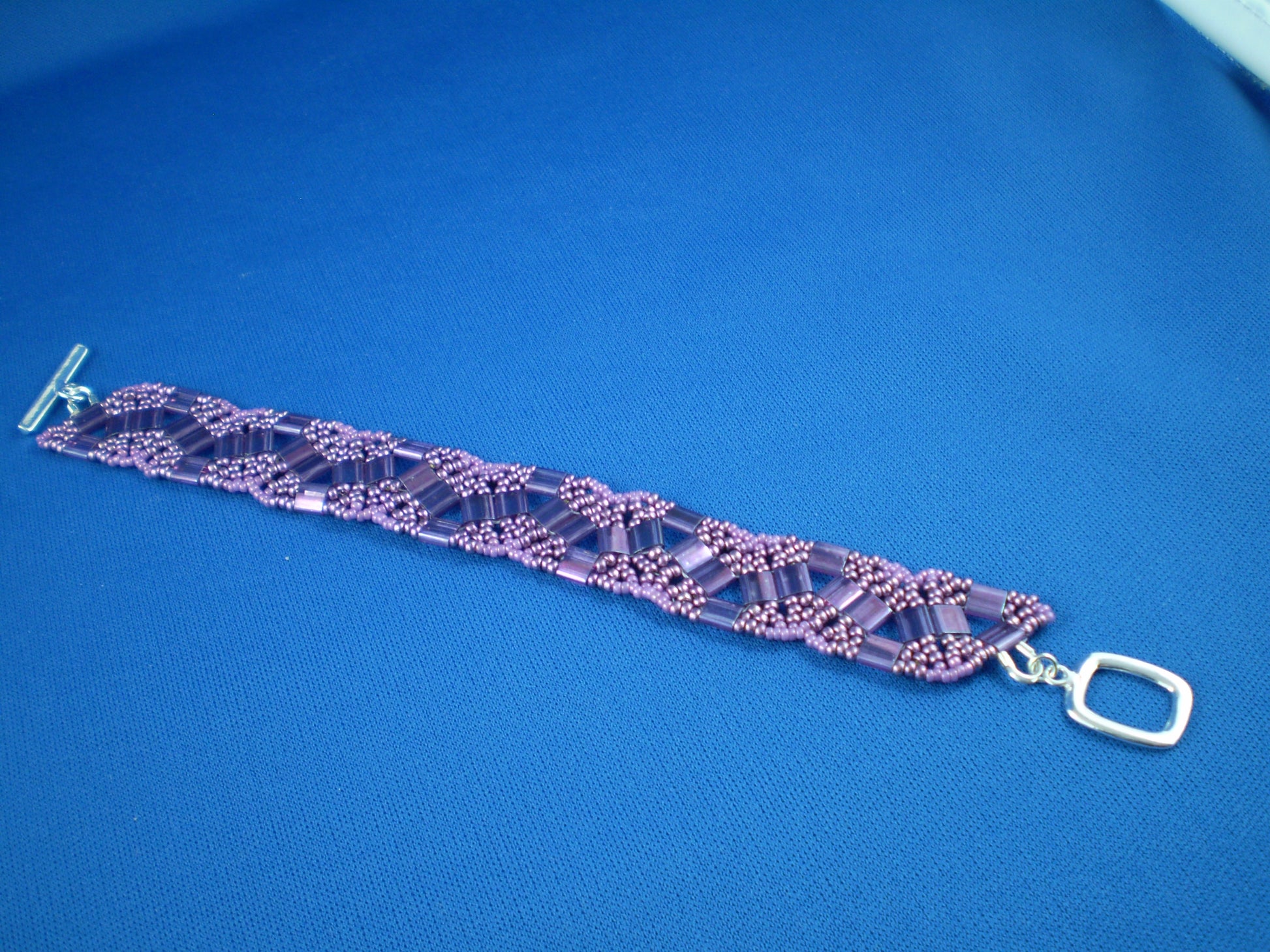 Tila and Japanese seedbead bracelet with Sterling Silver toggle (7")