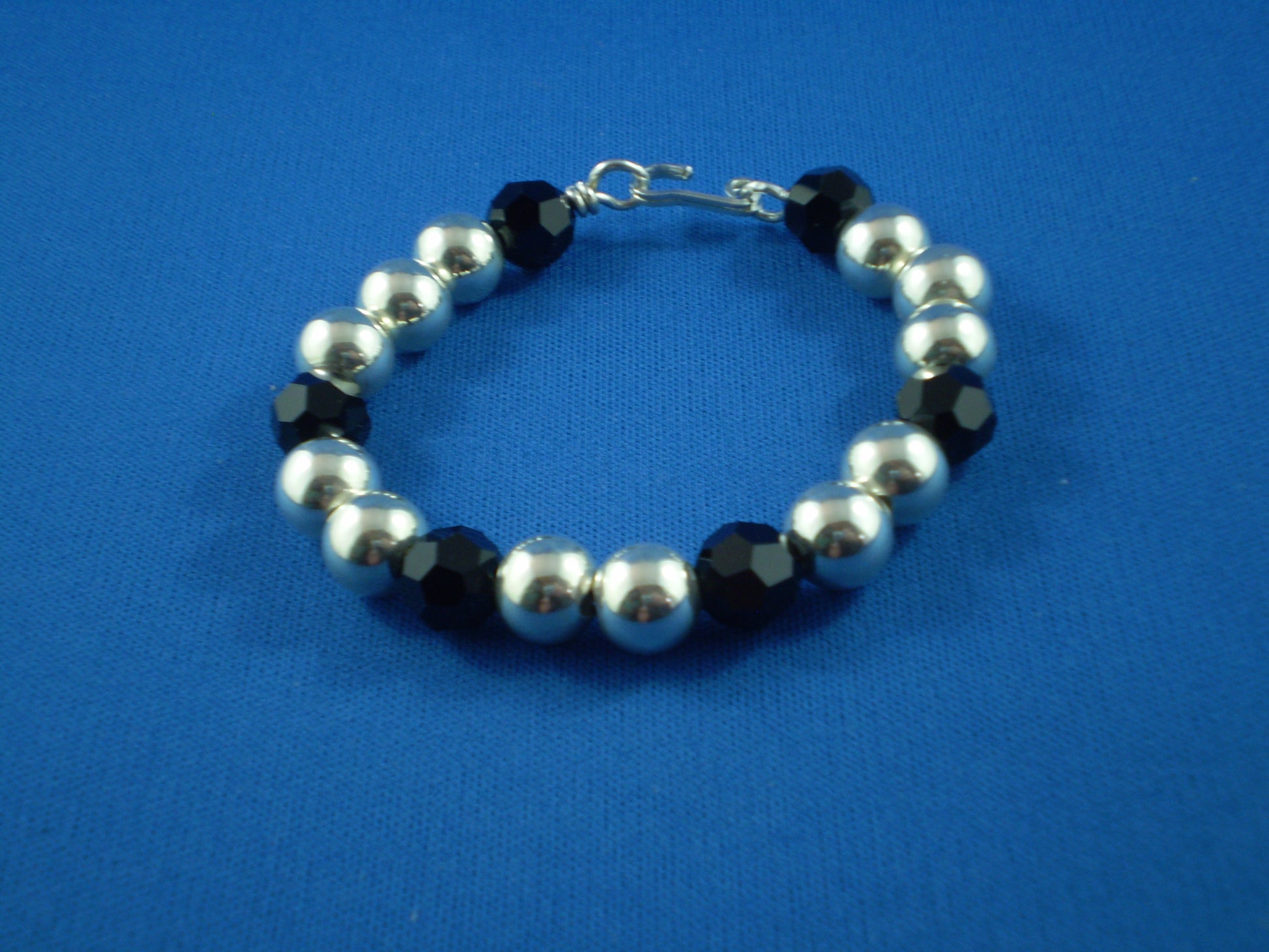 Sterling Silver hollow beads with large Swarovski crystals (8 3/4")