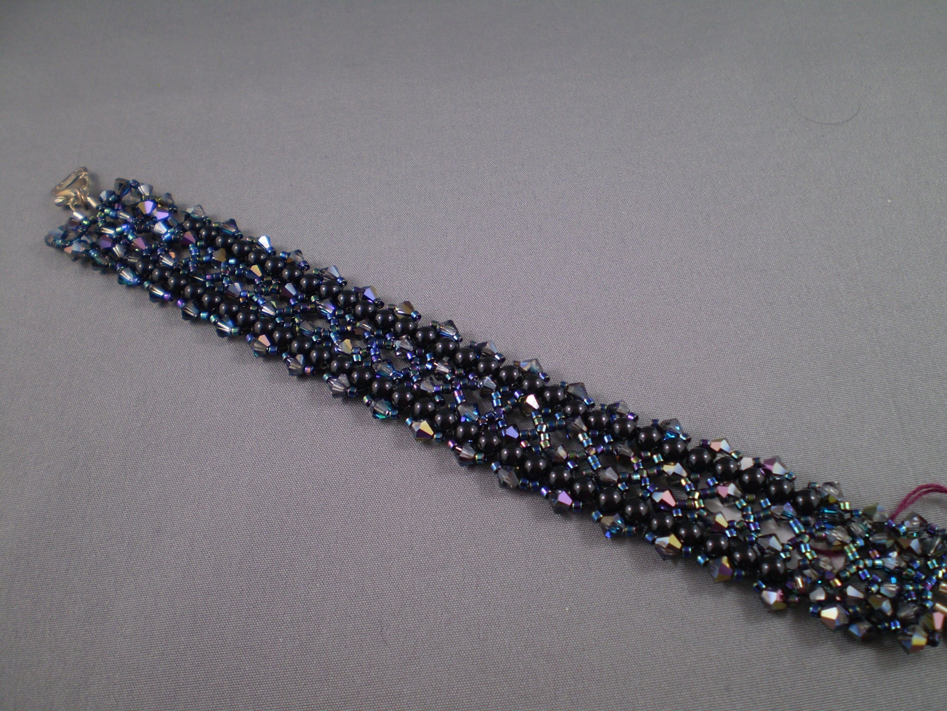 Swarovski pearls and crystals with Japanese seed bead trim and Sterling Silver heart-shaped lobster closure (7 1/4")