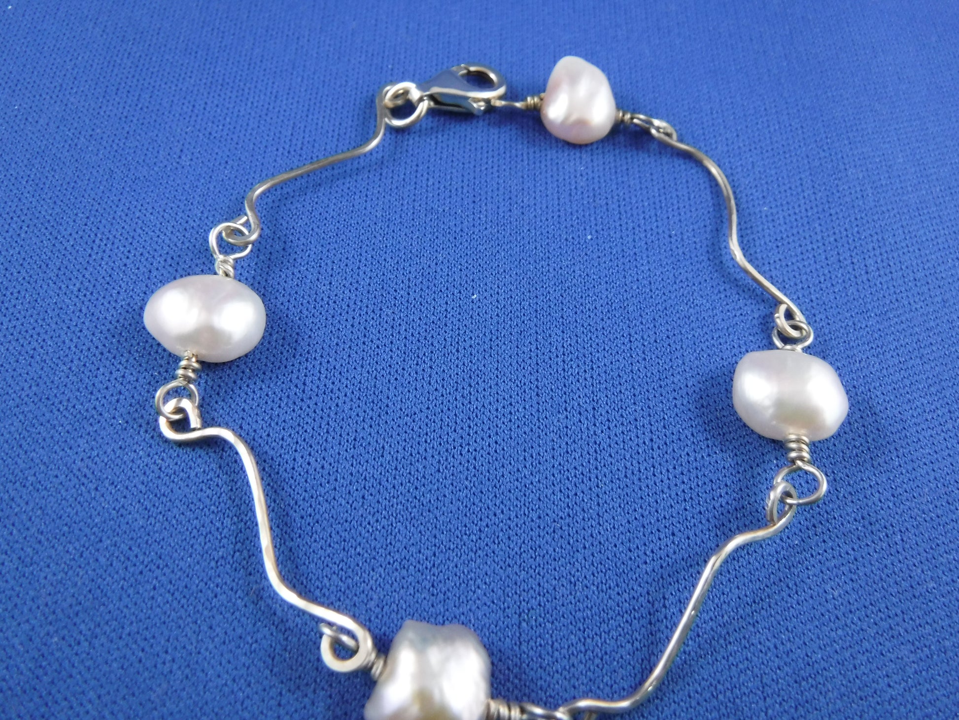 Sterling silver "waves"and freshwater pearls- (8 1/2")Sterling lobster closure
