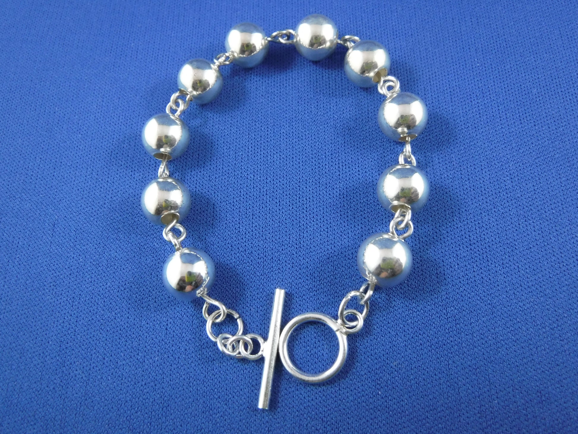 Sterling Silver hollow bead bracelet with Sterling Silver toggle closure (8")