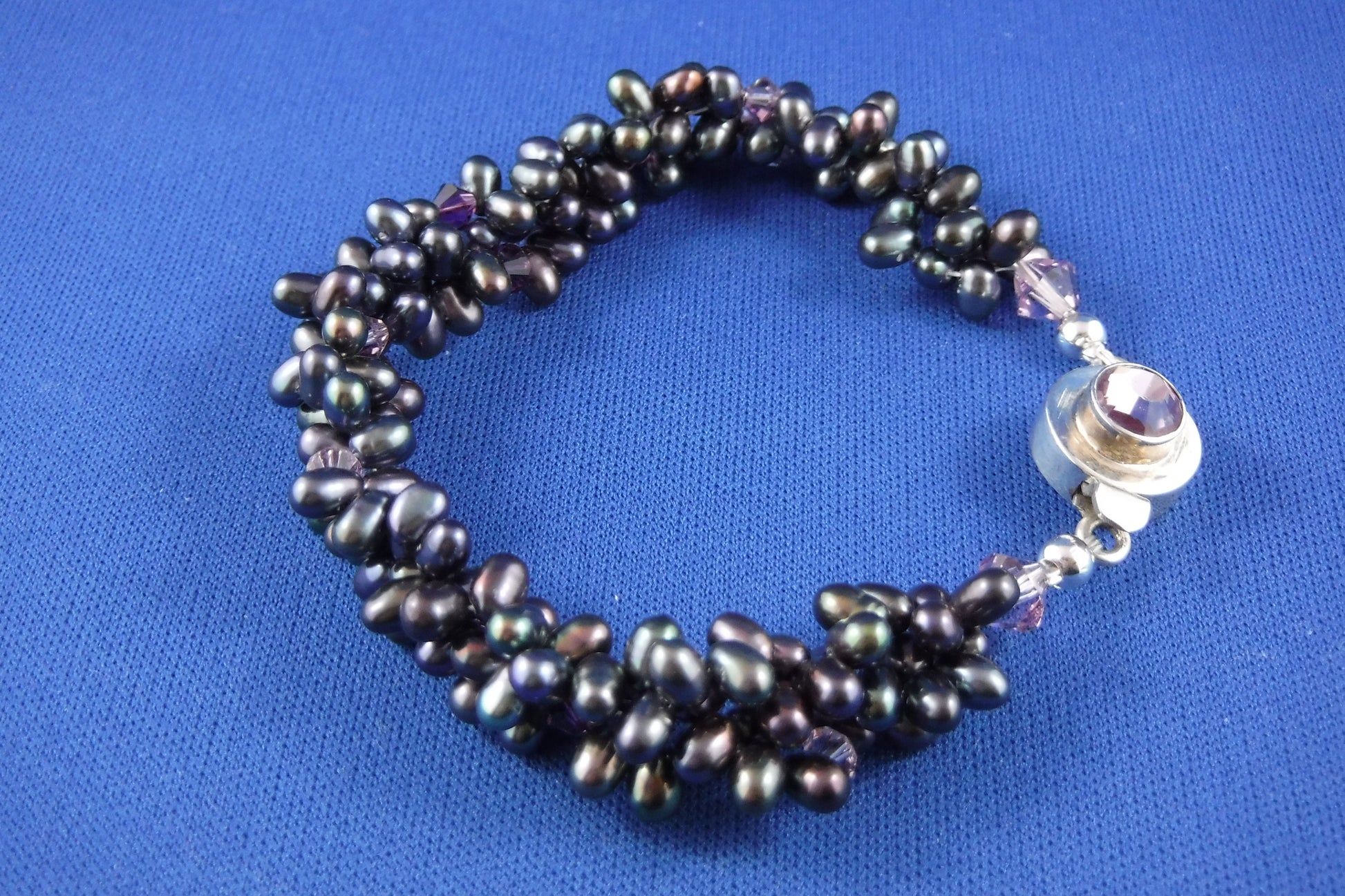 Freshwater pearls and Swarovski crystals with Sterling Silver and crystal clasp (7 1/2")