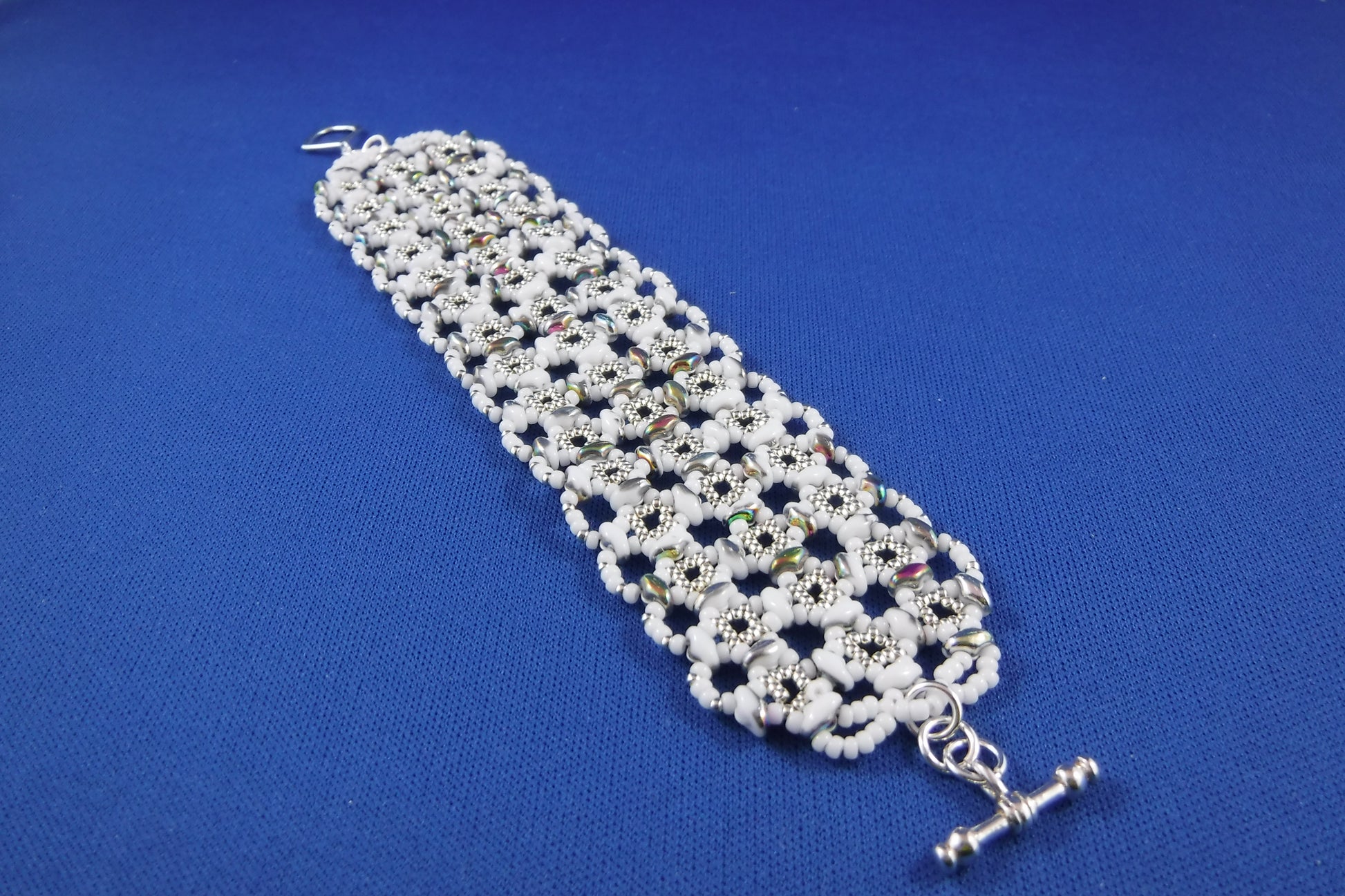 Beaded wide bracelet with Sterling Silver toggle closure (7 1/2")
