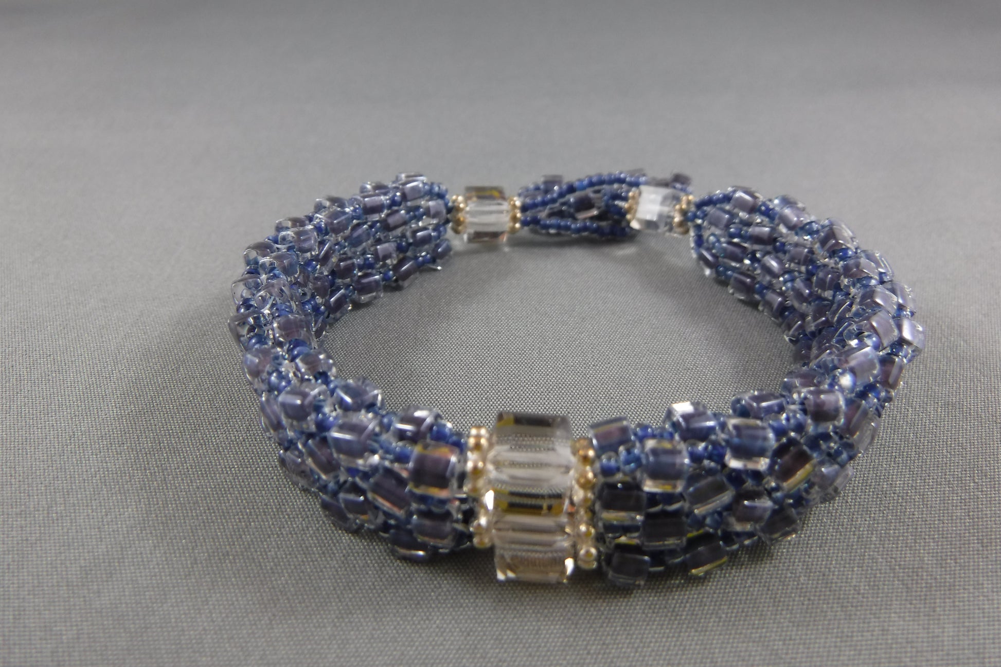 Beaded Bracelet with hand-made toggle and square Swarovski crystals (7") Sterling Silver trim