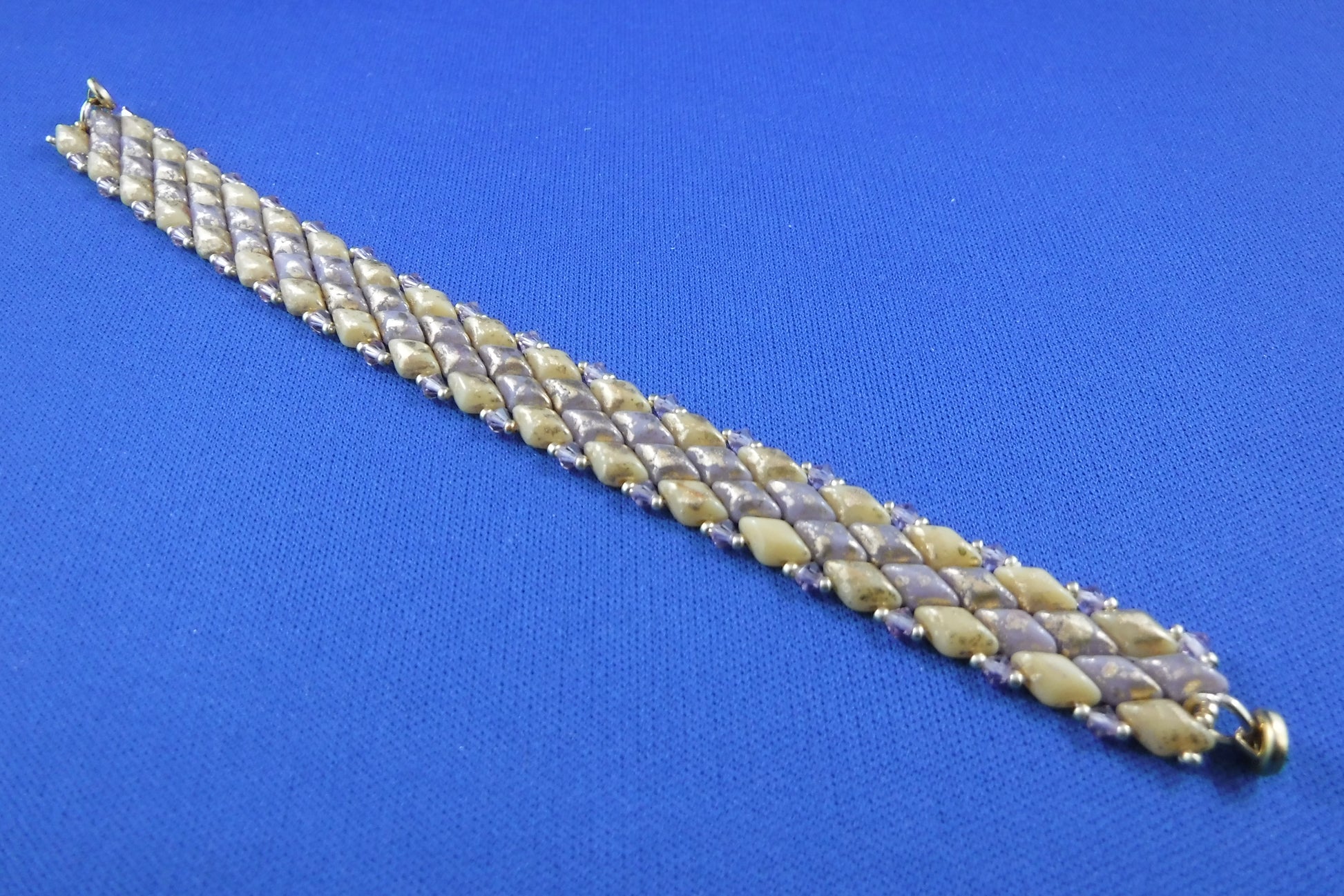 Beaded bracelet with Swarovski crystals and magnet closure (7") gold/mauve