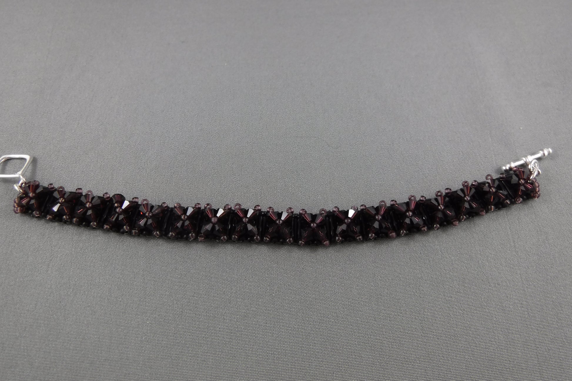 Swarovski crystals (maroon) on black beaded base with Sterling Silver toggle (7 1/2")