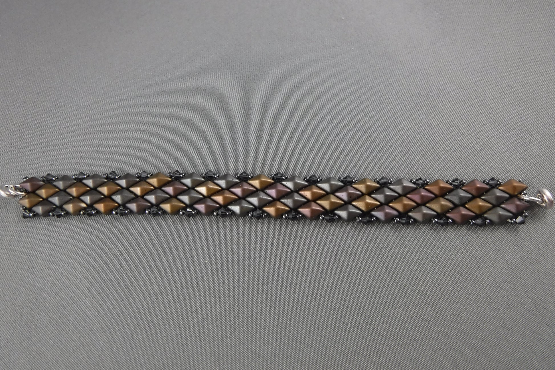 Diamond shaped beads (matt grey/copper) with Swarovski crystals with magnet closure (6 1/2")