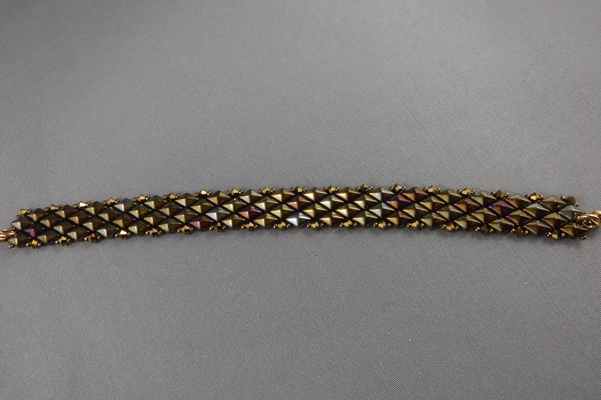 Diamond shaped beads (glossy bronze) with Swarovski crystals and magnet closure (7")