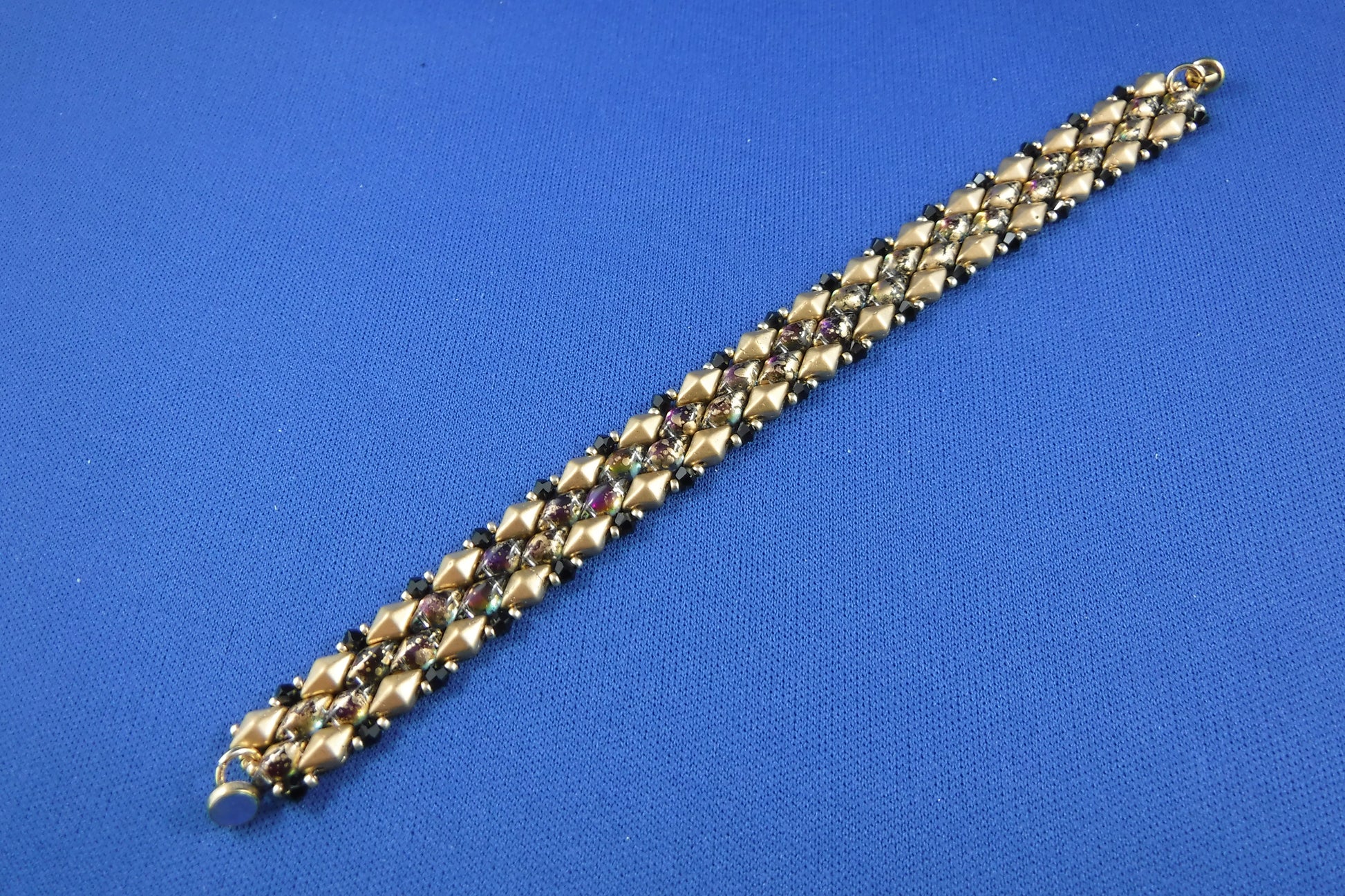 Diamond shaped beads with Swarovski crystals and magnet closure (7")-matt gold + black