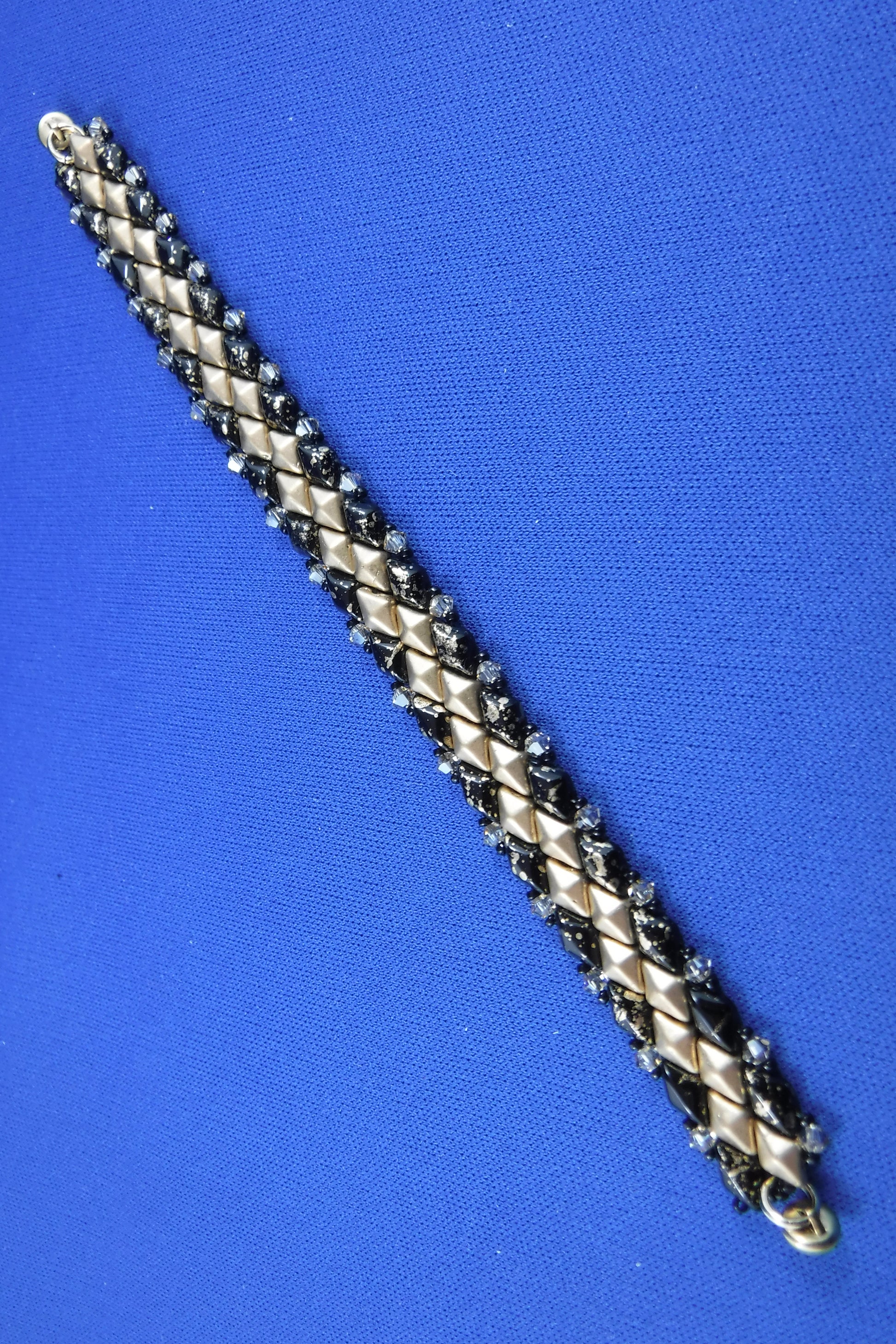 Diamond shaped beads with Swarovski crystals and magnet closure (7")-matt gold + black edge