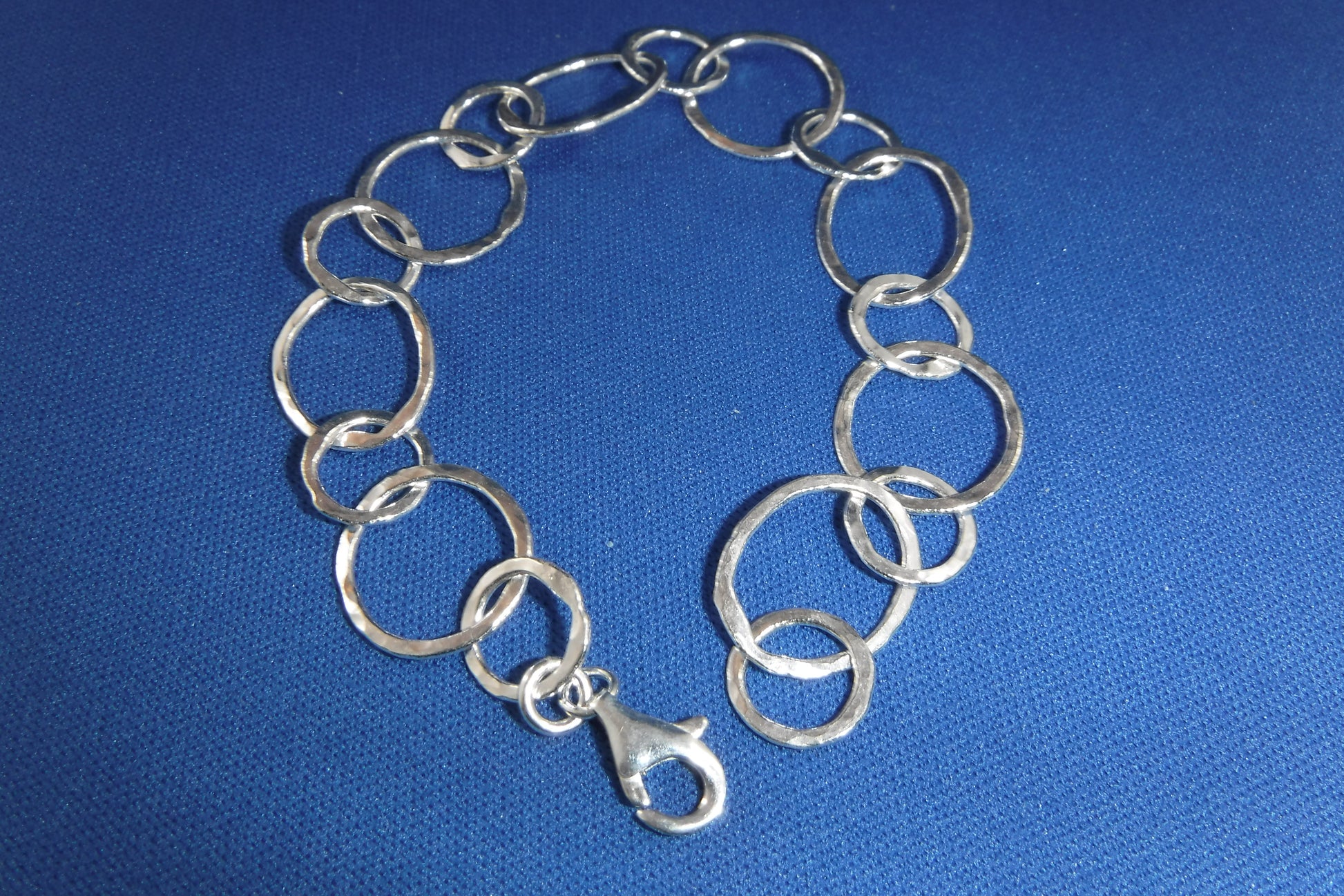 Fine Silver oval and circle loops with Sterling Silver lobster closure (8 1/2" or less)