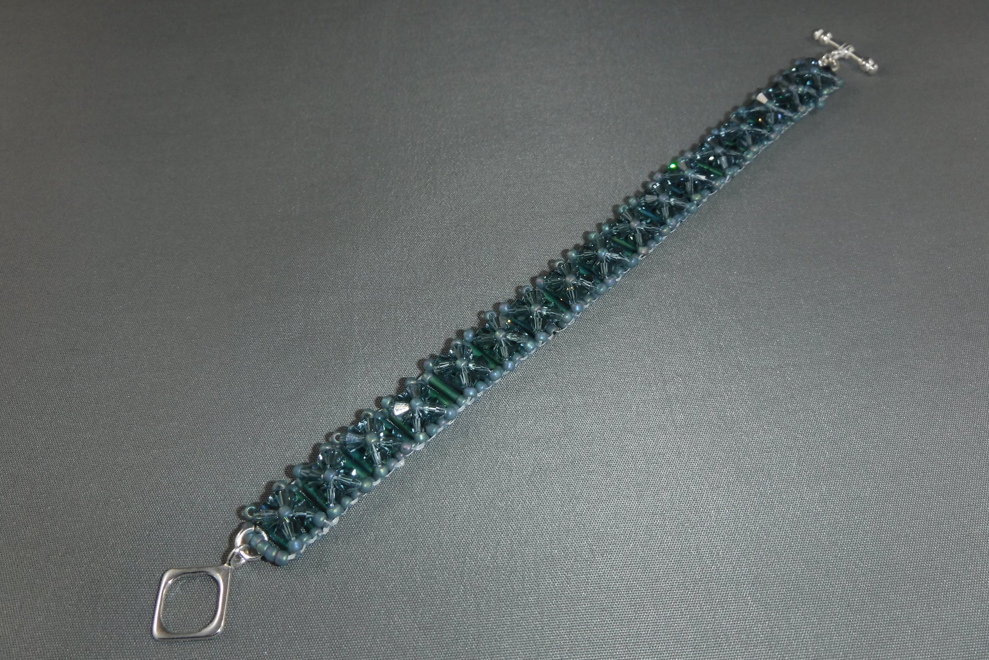 Swarovski crystals on Japanese bugle bead base with Sterling Silver toggle (7 1/4")- teal blue