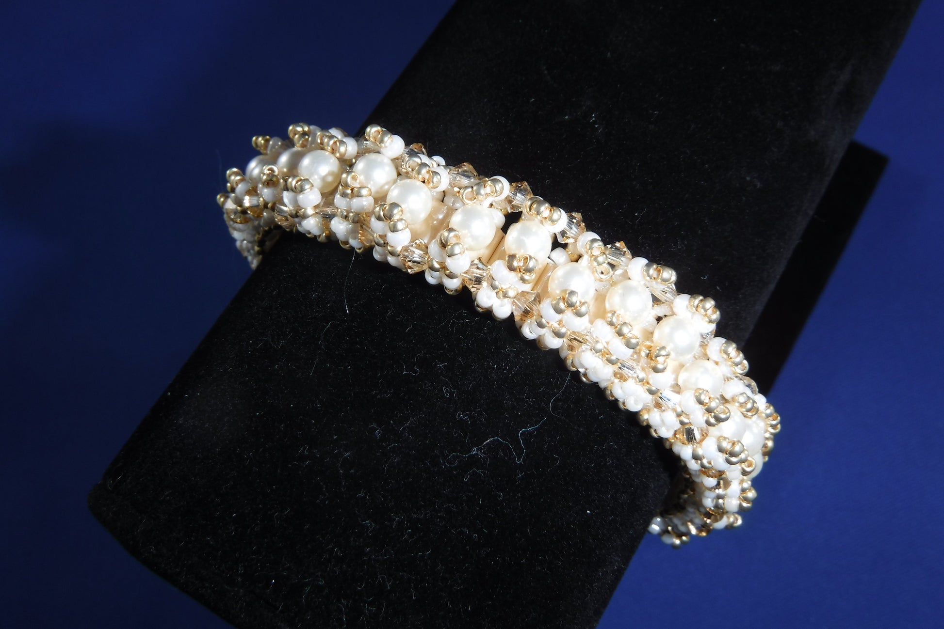 Beaded bangle with Swarovski pearls and crystals, Japanese seed beads and magnet closure