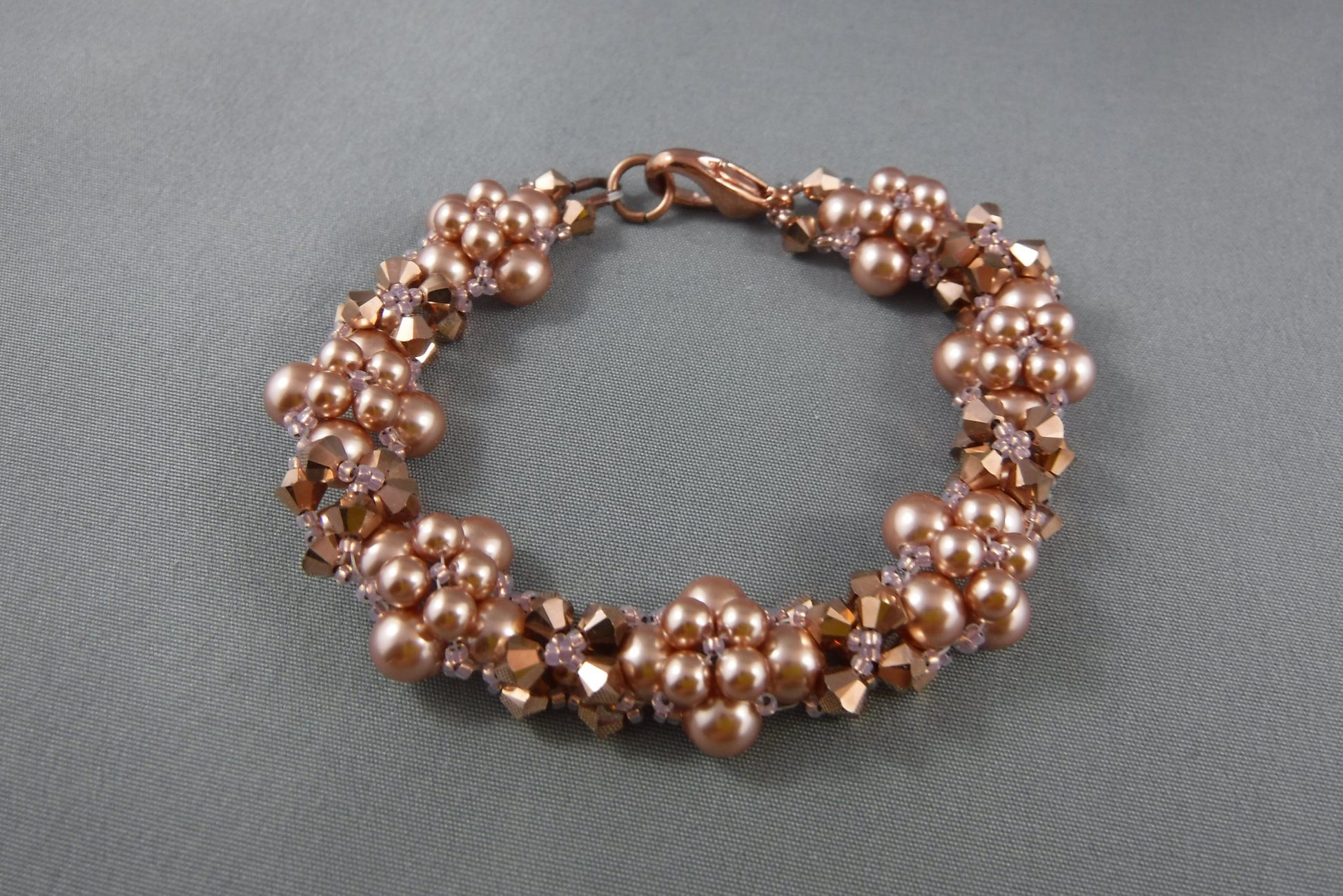 Beaded with Swarovski pearls and crystals, rose-gold plated lobster closure (7 3/4")- rose-gold colour