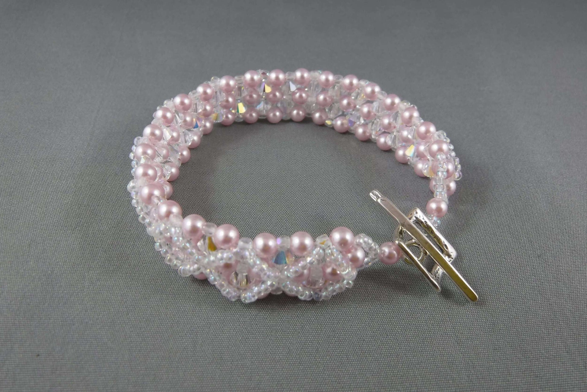 Swarovski pearls and crystals, Japanese seed beads and Sterling Silver toggle (7 1/4") -pink/white trim