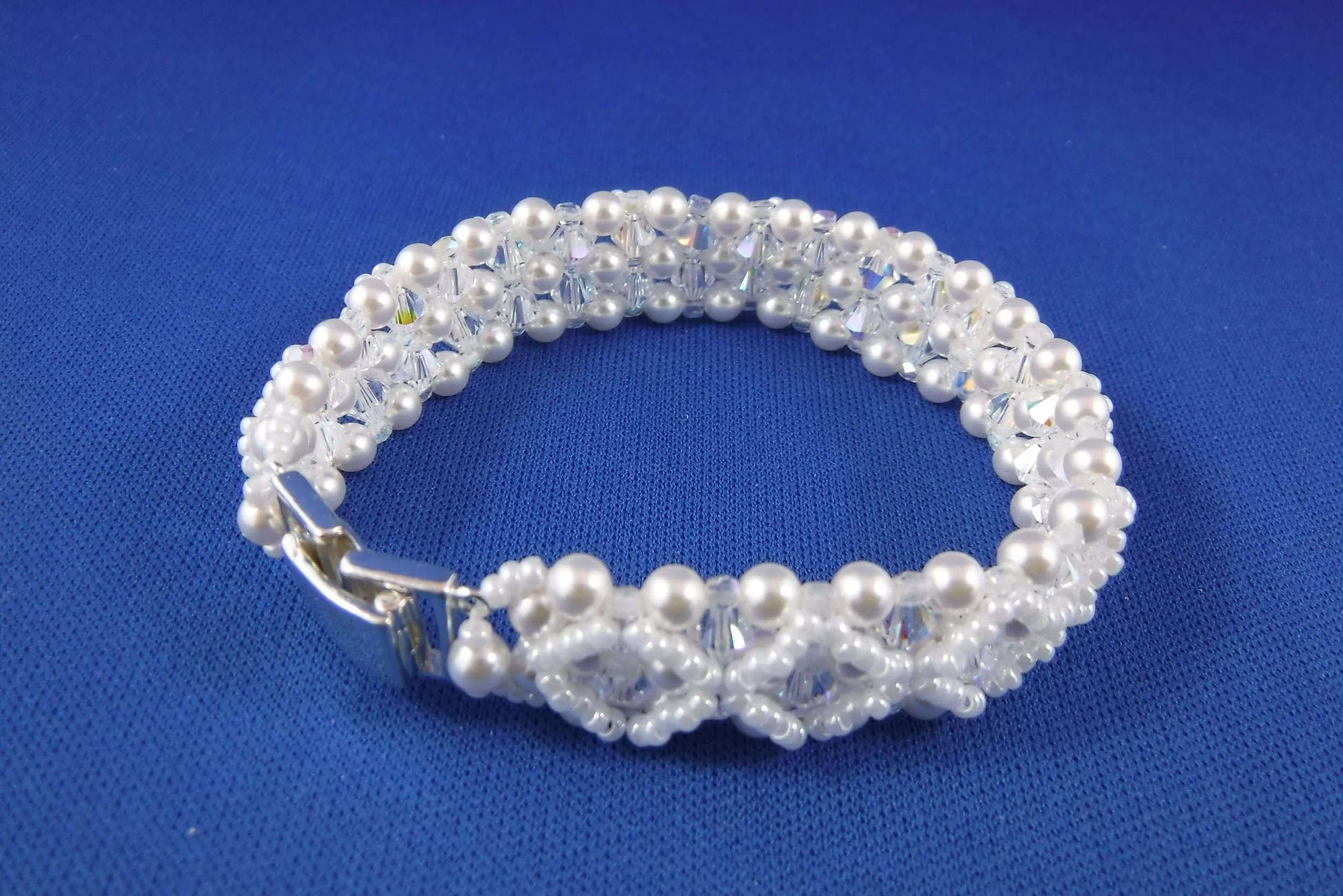 Swarovski pearls and crystals, Japanese seed beads and Sterling Silver clasp (6 3/4") -white