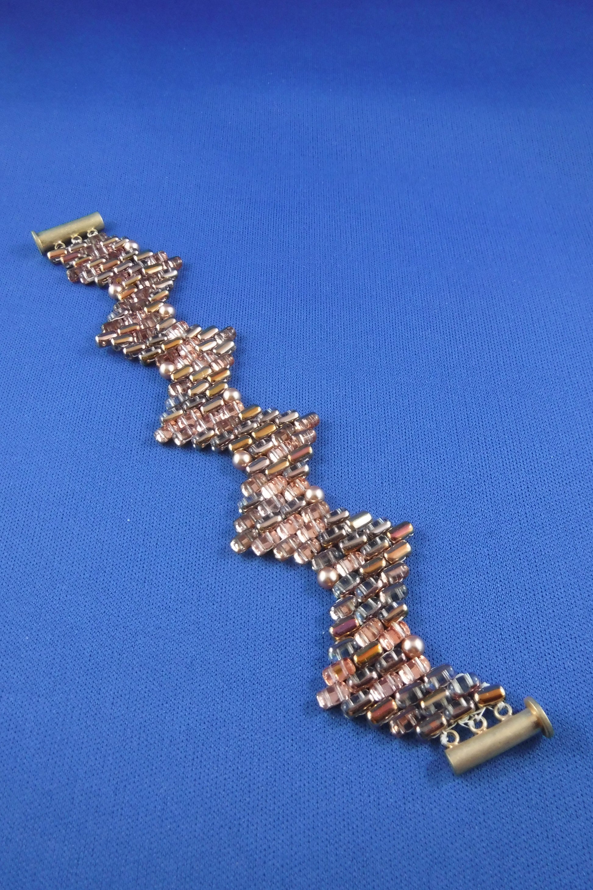 Beaded zig-zag bracelet with Swarovski pearls and antique gold coloured sliding closure (7")-rose-gold colour