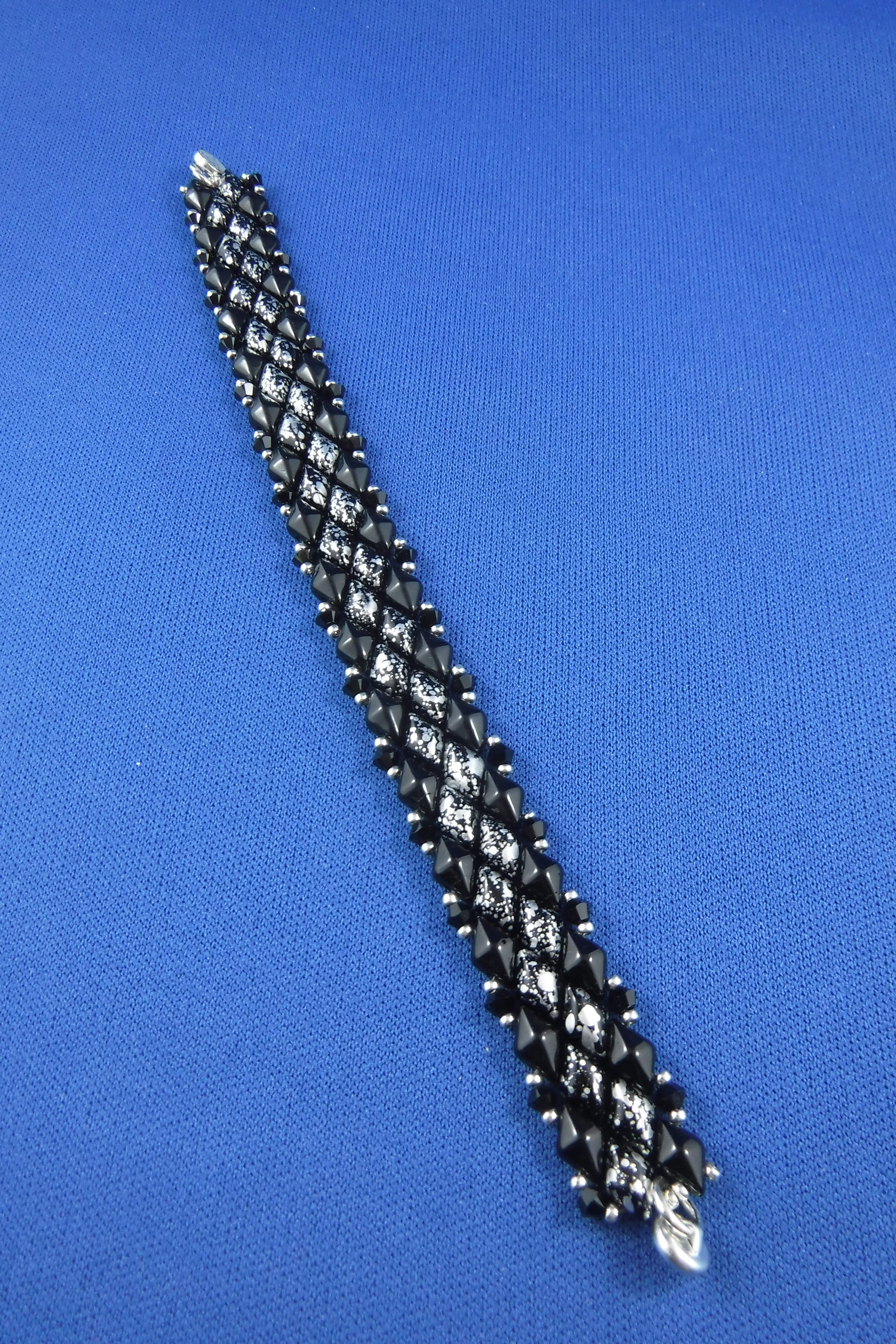 Diamond shaped beads with black Swarovski crystal edging and magnet closure (6 3/4")- black & silver