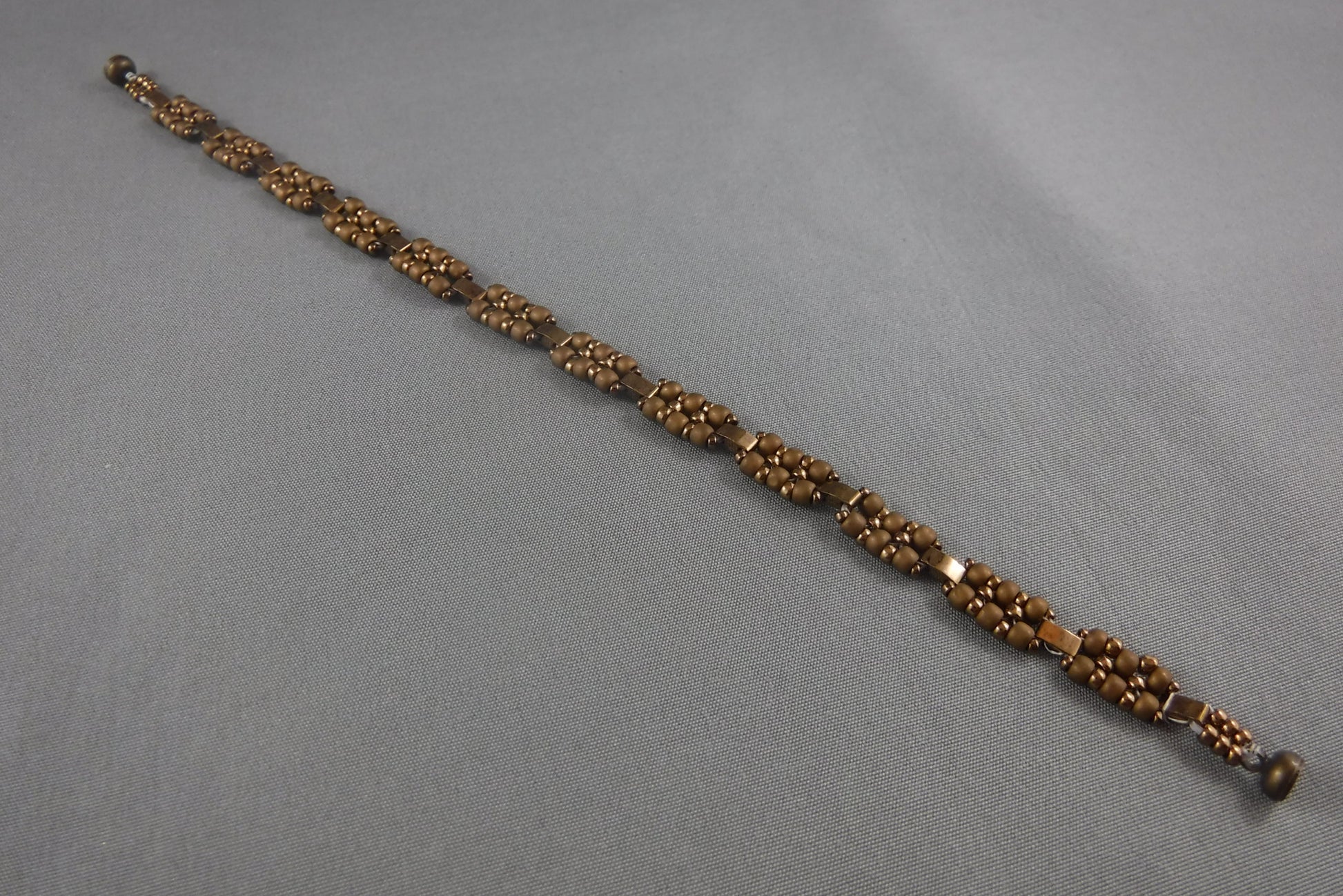 Beaded thin bracelet with Japanese Half-Tilas and seedbeads, magnet closure (7 1/2" by 5mm)- antique gold/bronze tones