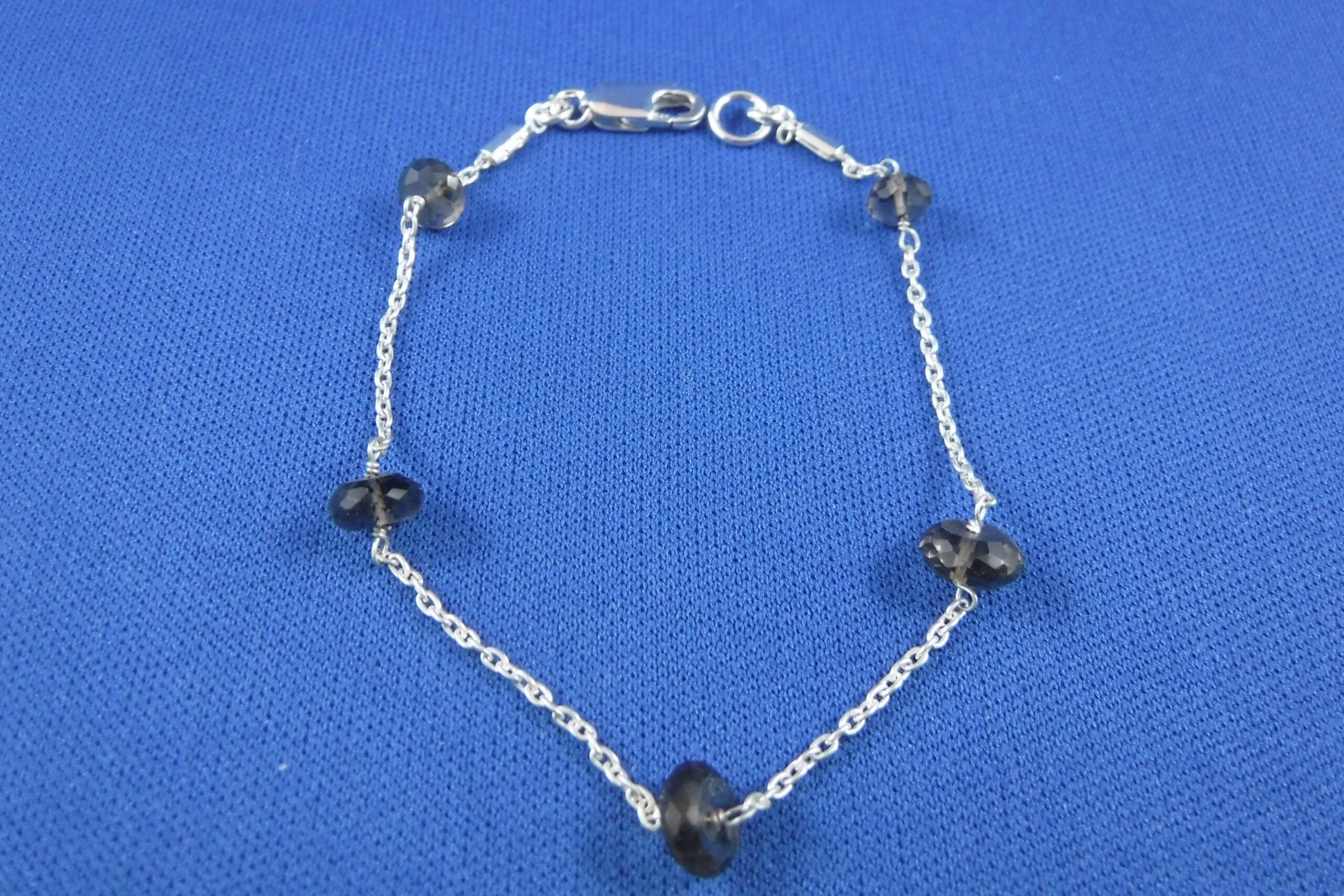 Fine Sterling Silver chain with Smokey Quartz stones and Sterling Silver lobster closure (7 1/2")