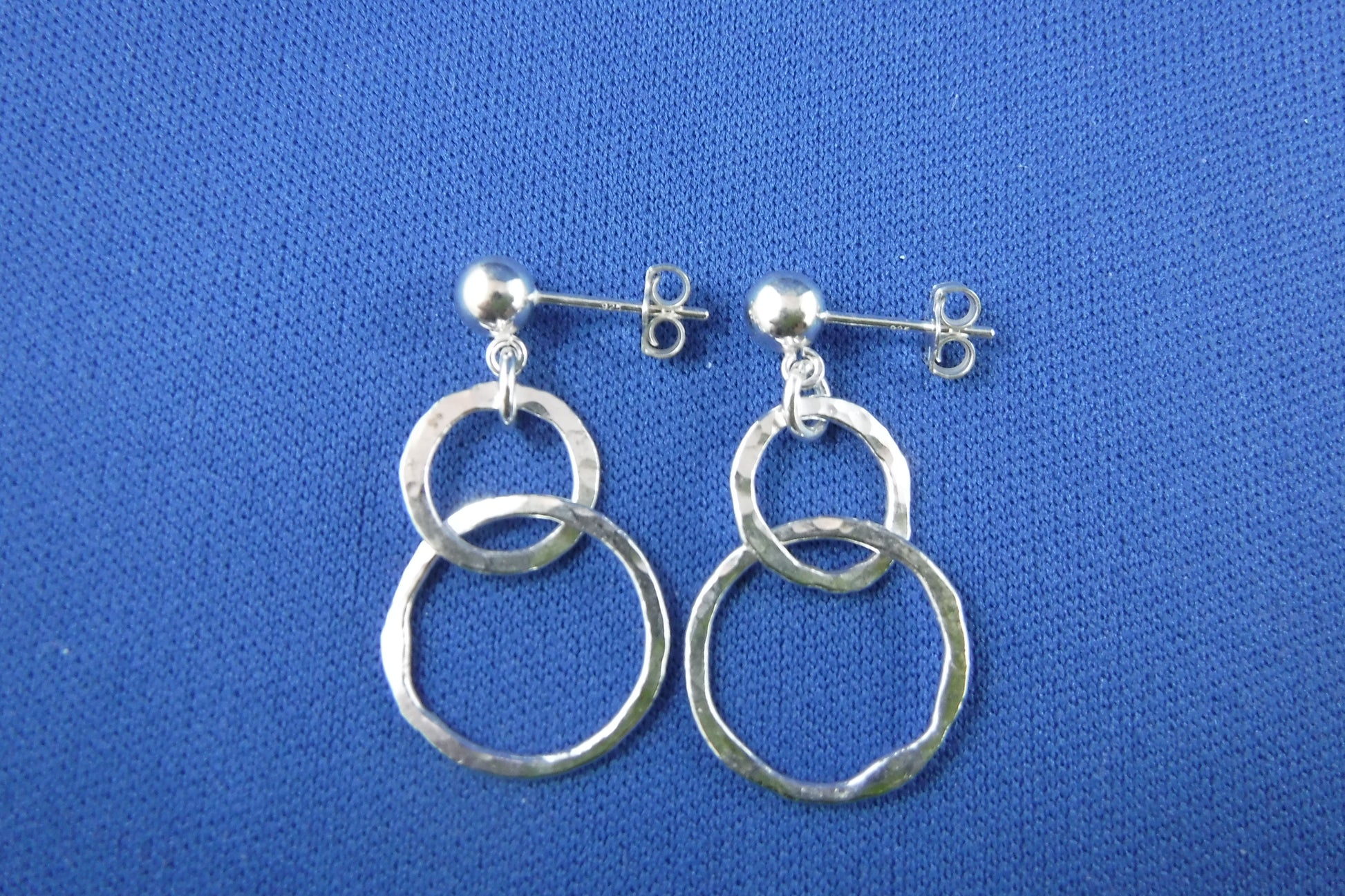 Hand shaped, dangling loops in Fine Silver with 5mm. ball studs in Sterling Silver .
