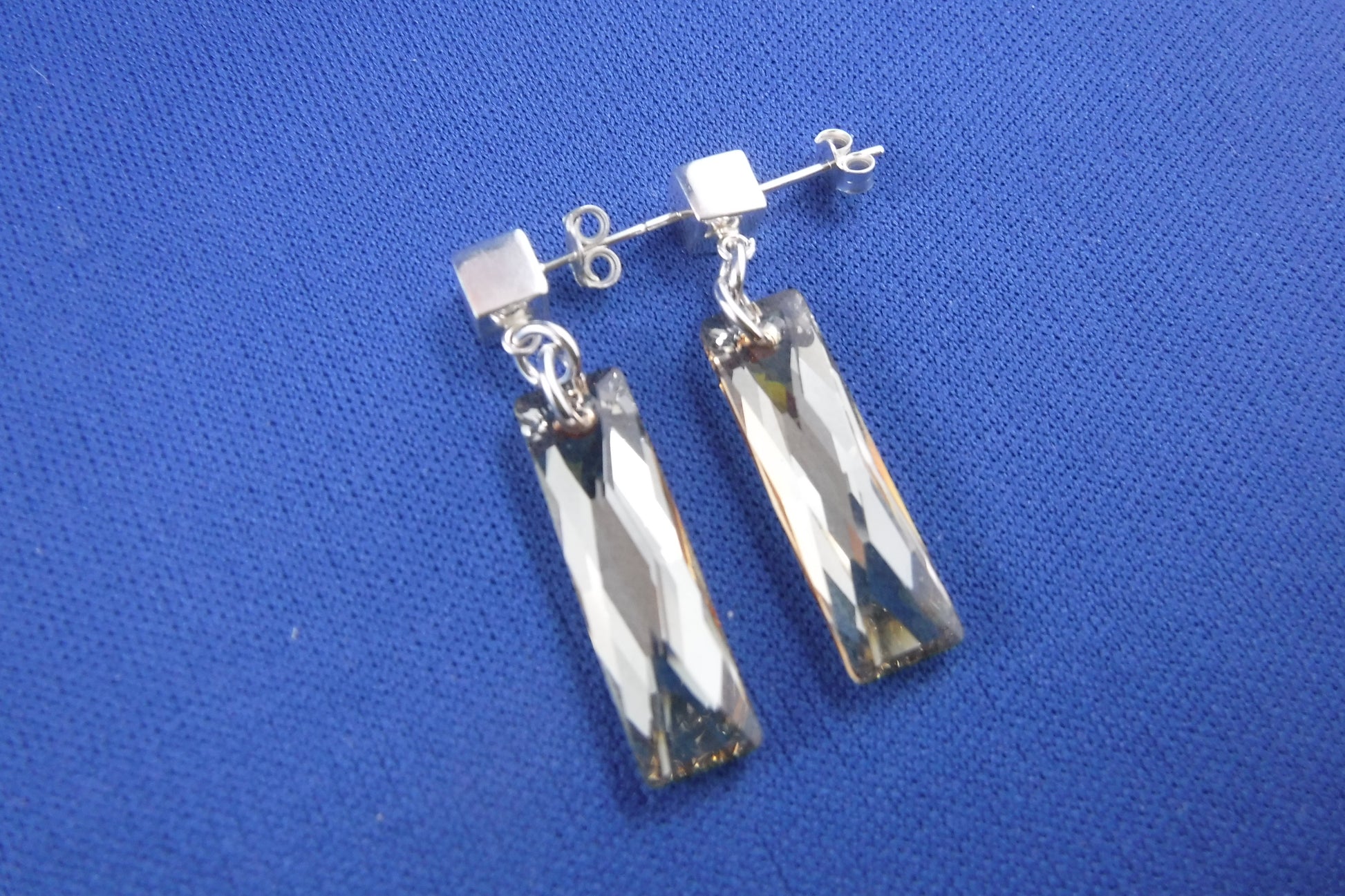 Faceted Swarovski crystal rectangles ( golden colour) with square, 5mm. Sterling Silver studs