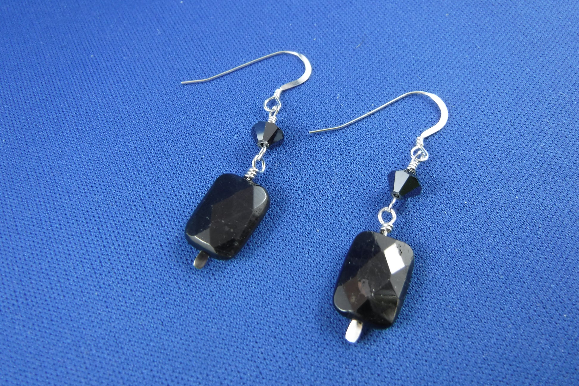 Faceted Hypersthene stones are accented with Swarovski Crystals and Sterling Silver ear wires. These earrings match necklace N-519