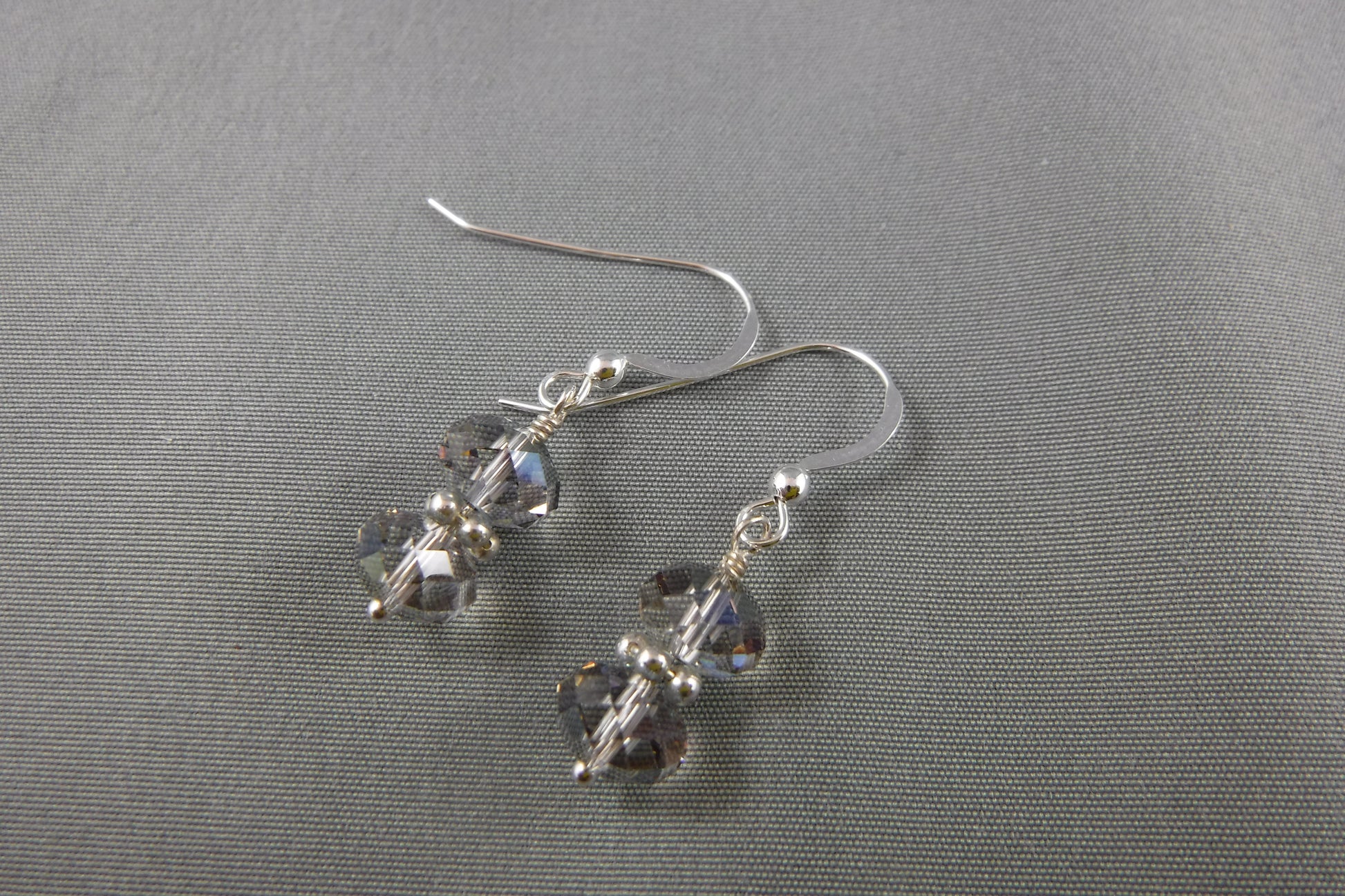 Swarovski Crystals with Sterling Silver accents and ear wires (silver shade with Aurora Borealis effect.