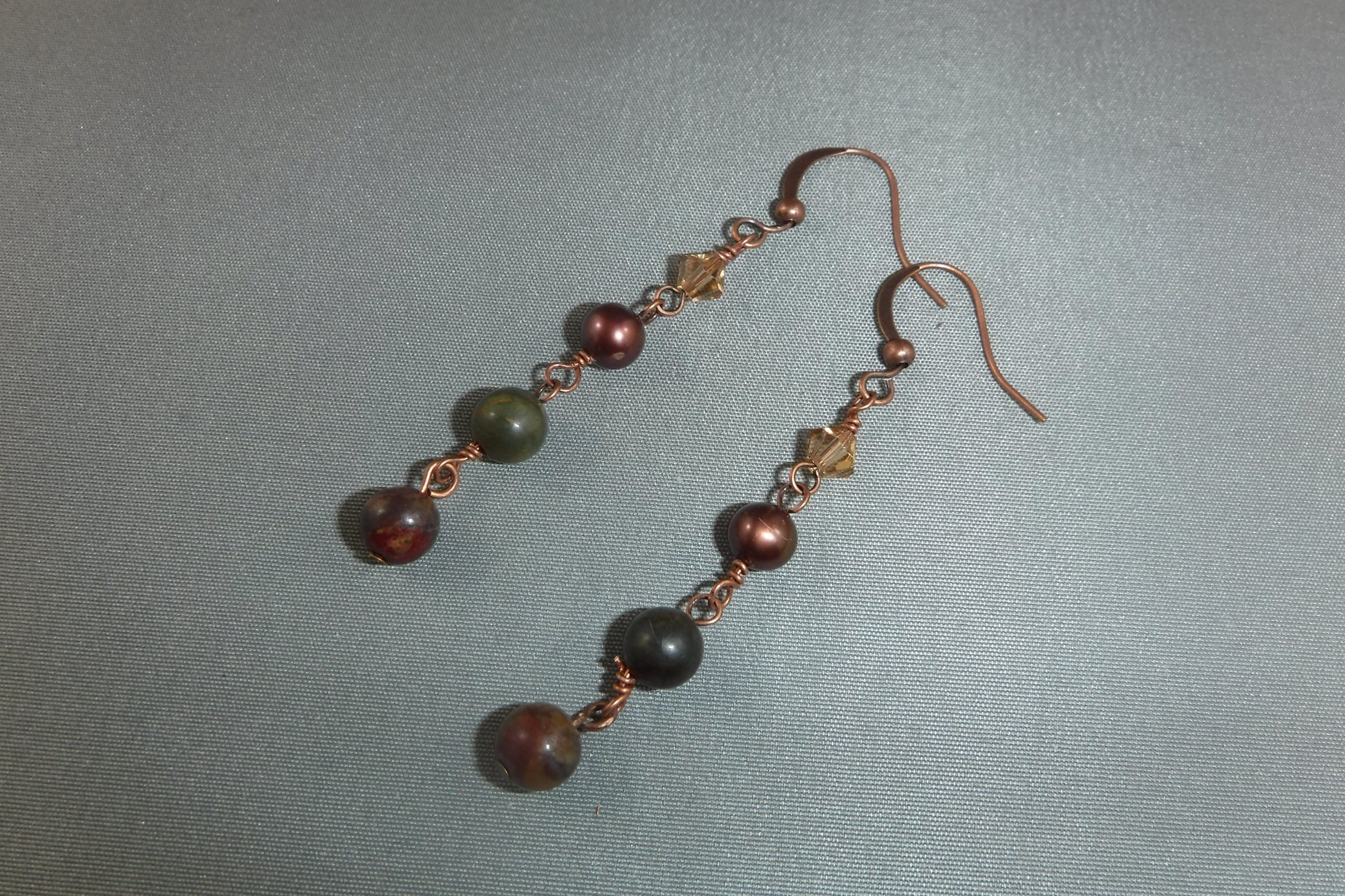 Jasper beads with Swarovski crystal accents and antique, cooper plated ear wires (Nickel free)