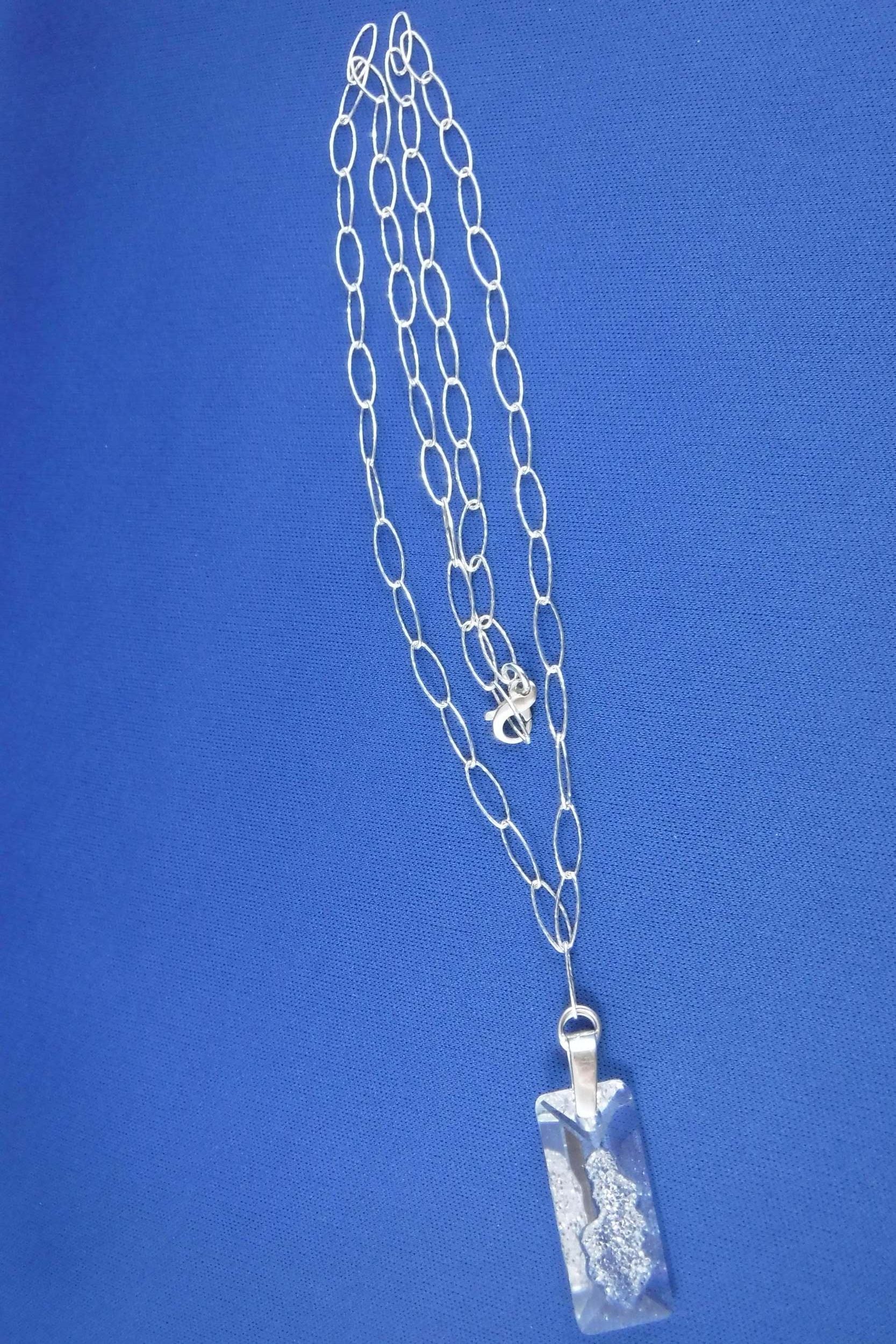 Sterling Silver elongated oval chain with clear Swarovski crystal pendant with Sterling Silver bail and Figure 8 lobster closure (25 1/2")