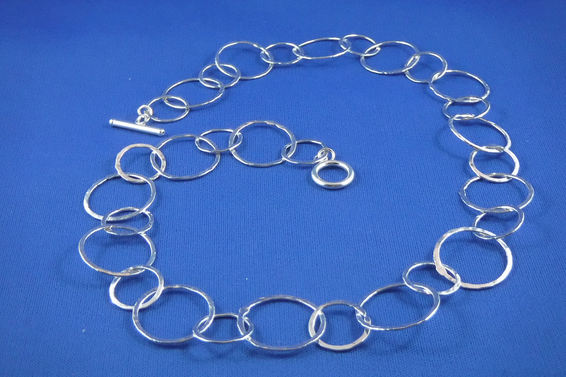 Fine Silver handmade links- 1" and 1/2" circles and a Sterling Silver toggle closure (23 1/2")