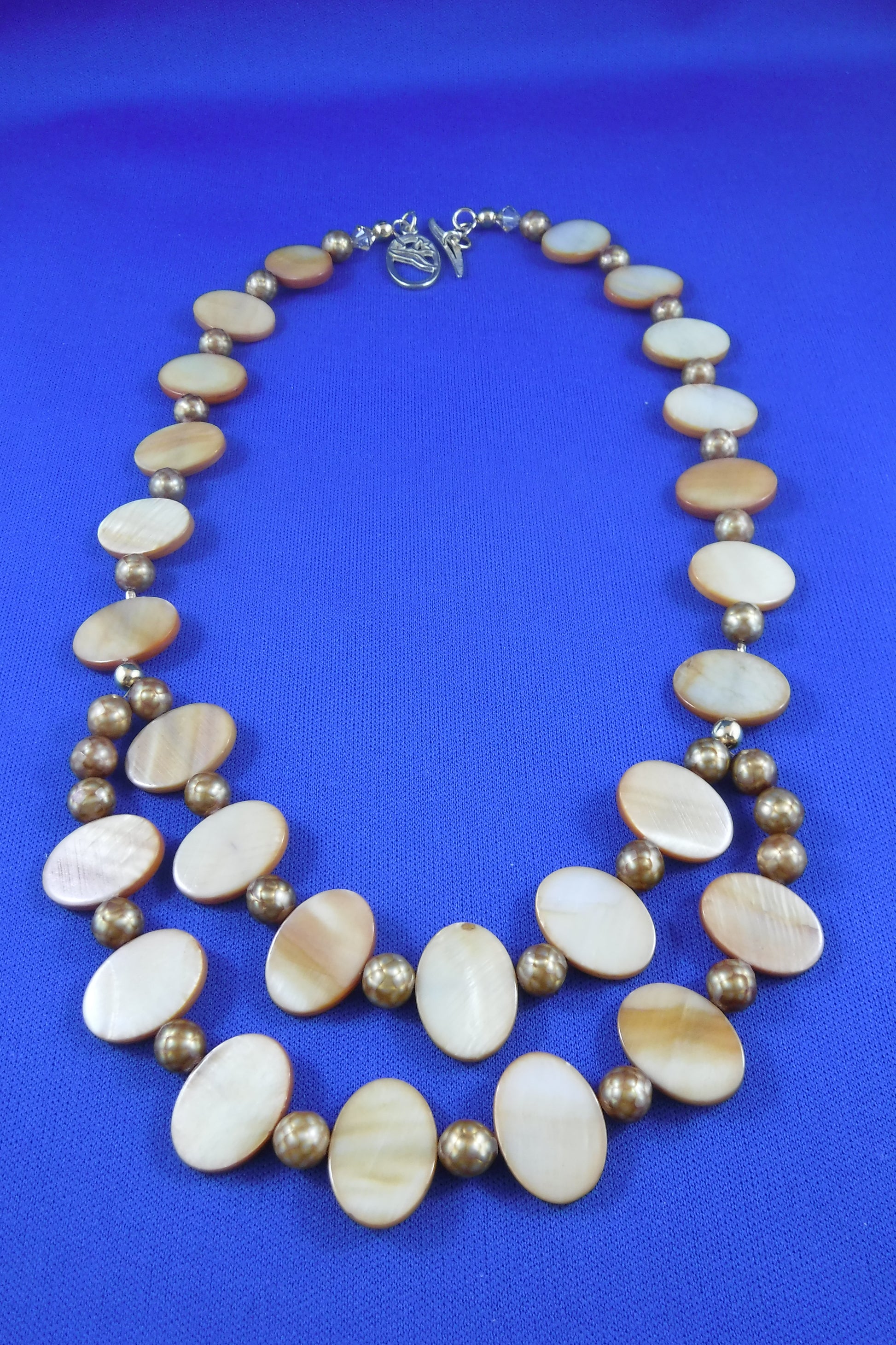 Shell and faceted, freshwater pearl necklace with gold-plated toggle- Double strand effect-gold colour (20-22") See matching earrings- E-552