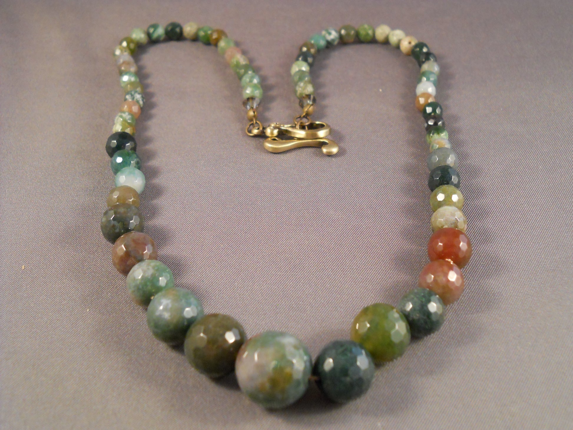 Hand knotted necklace with green tone Agate and antique brass toggle ( 20 ¾" )