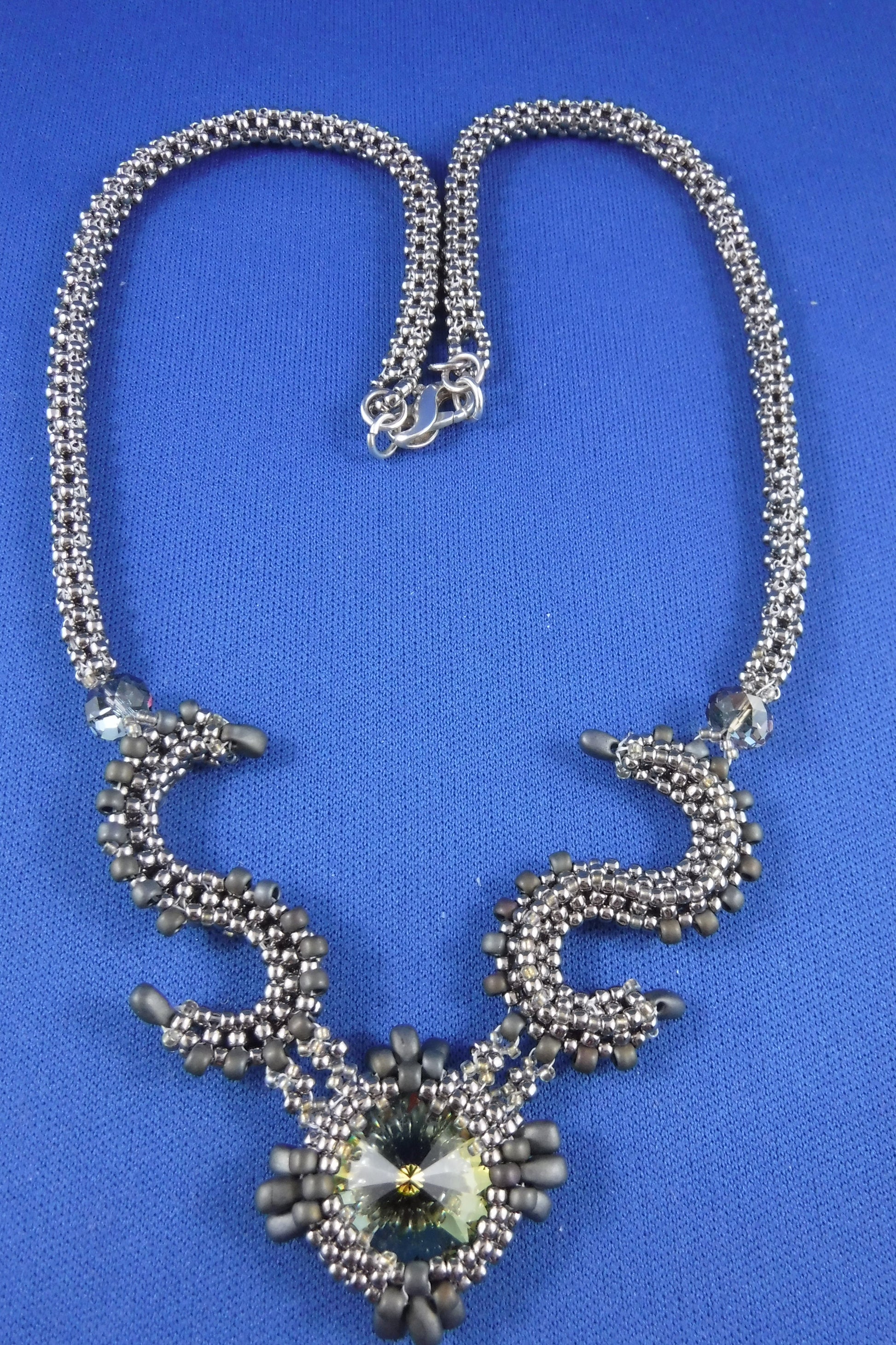 Japanese antique silver beads with Swarovski crystals and sterling lobster closure (20")