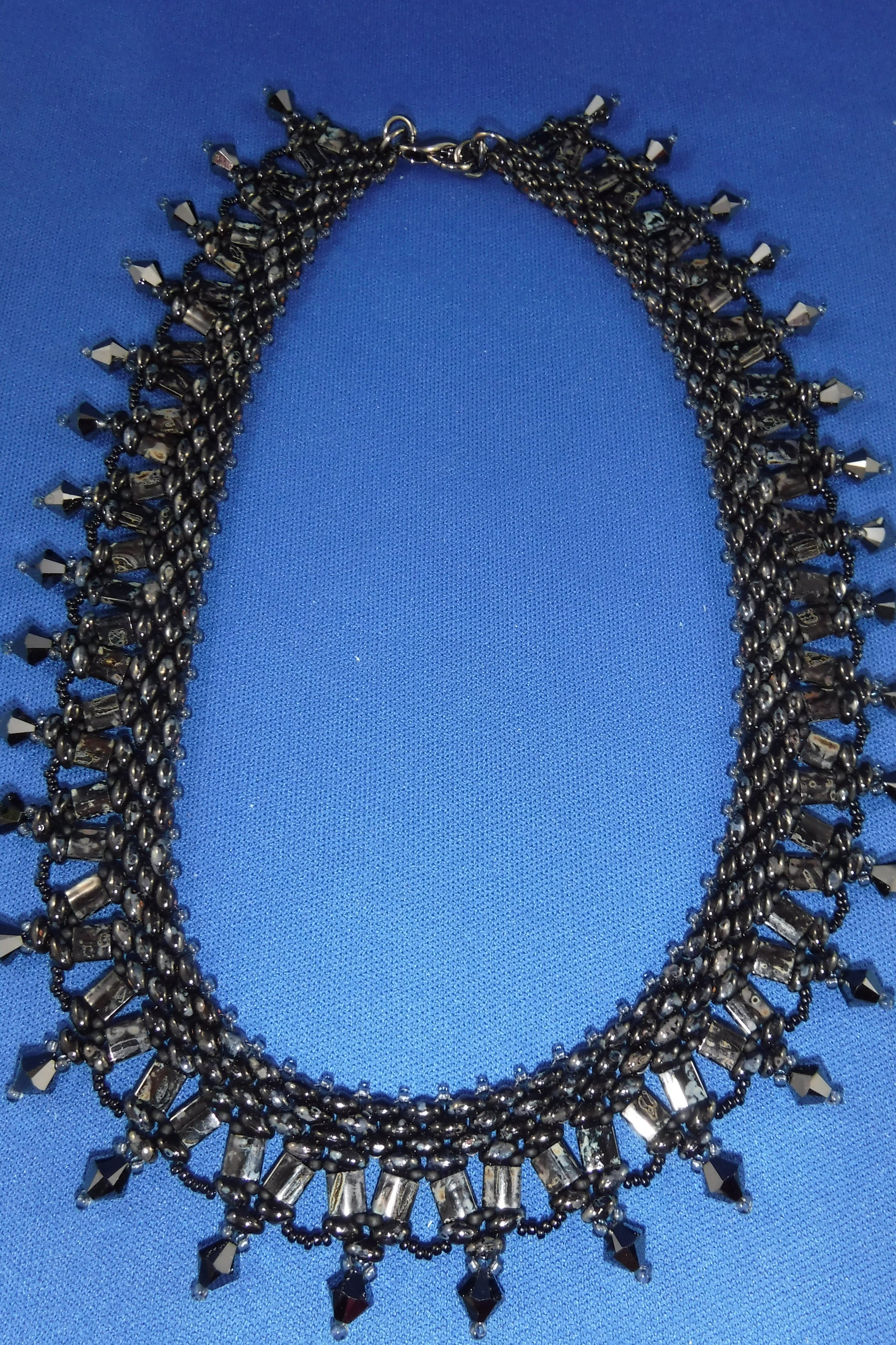 Japanese Tila bead necklace with Swarovski crystals and gunmetal lobster closure (17 1/2")-grey/black