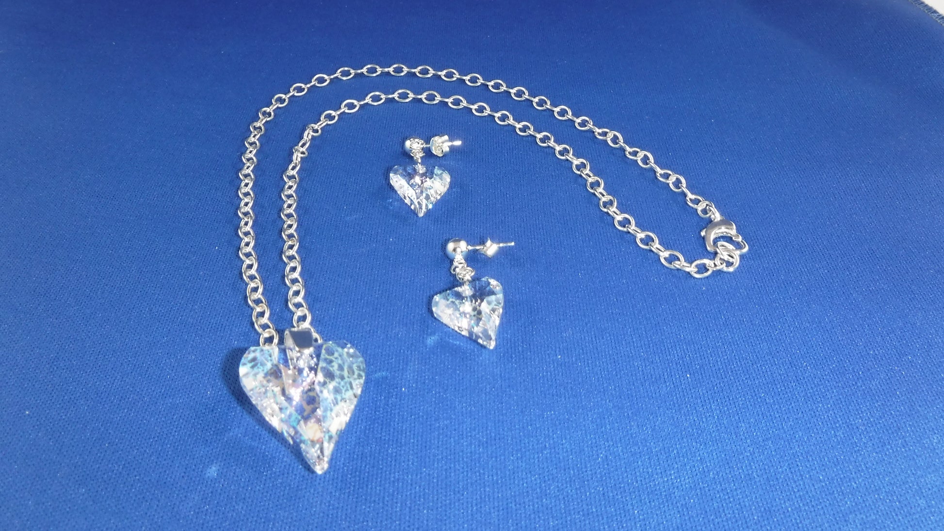 Sterling silver chain with Swarovski silver patina heart pendant (21"): Bonus: Matching Swarovski silver patina heart earrings with sterling silver studs included (1 1/4" long)