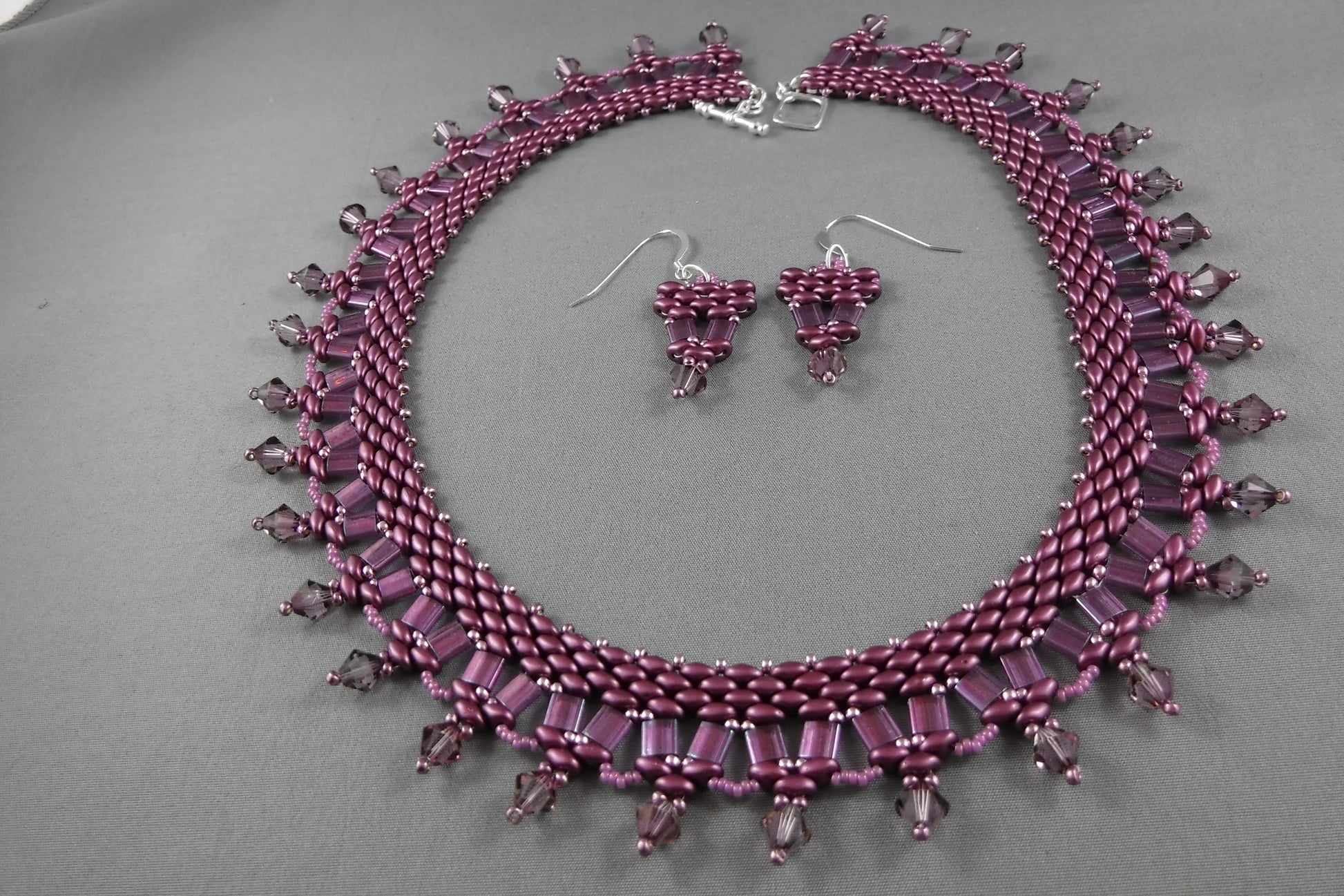 Beaded neckace with Swarovski crystals and sterling silver toggle (18 1\2"); Matching earrings with Sterling Silver earwires included (2" long).